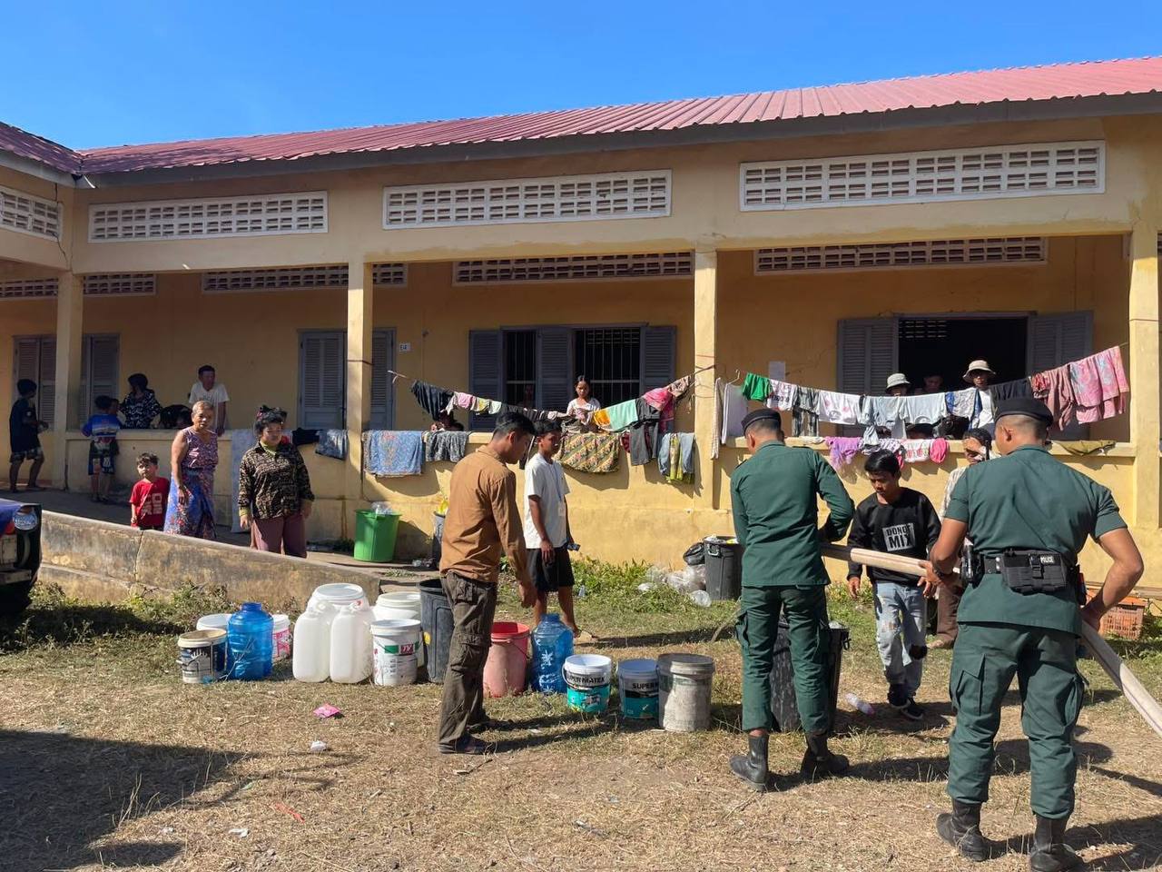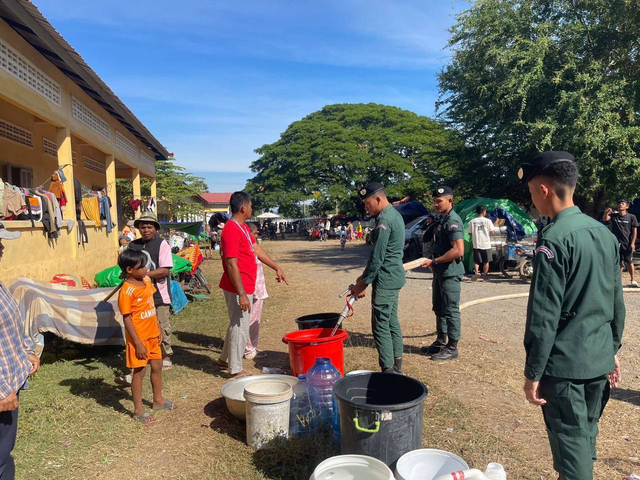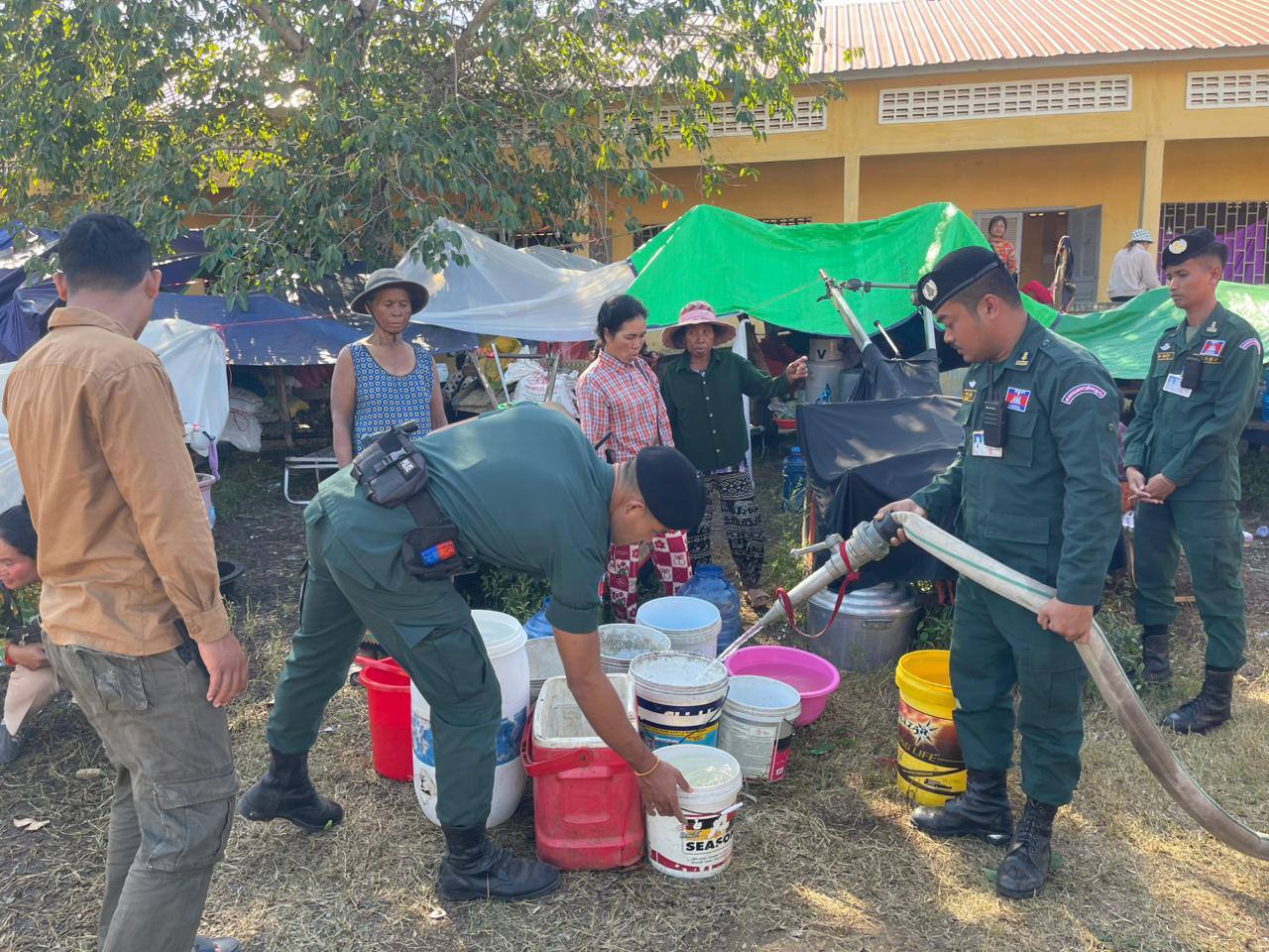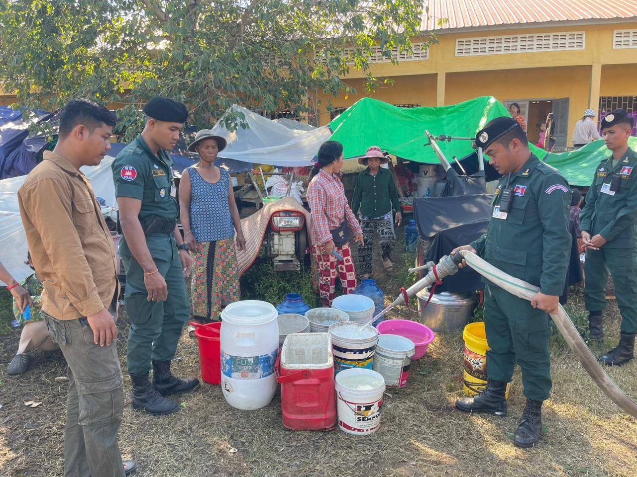 ស្នងការនគរបាលខេត្តបន្ទាយមានជ័យ ចុះចែកទឹកជូនដល់ជនភៀសសឹក កំពុងជួបការខ្វះខាតចាំបាច់