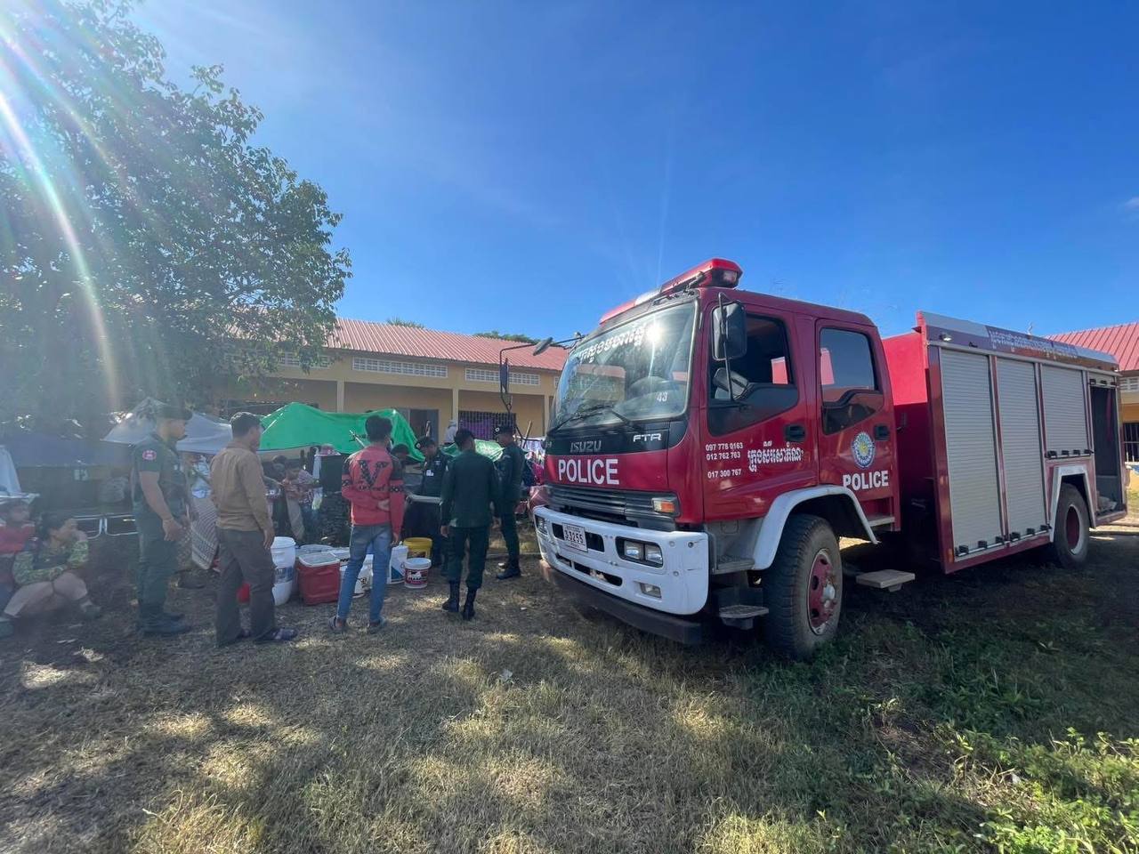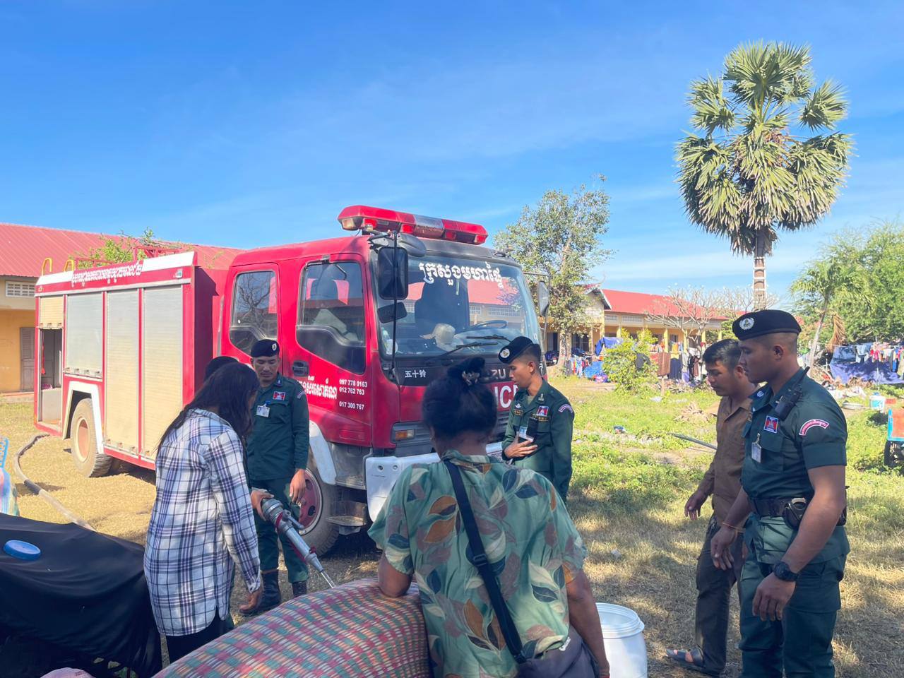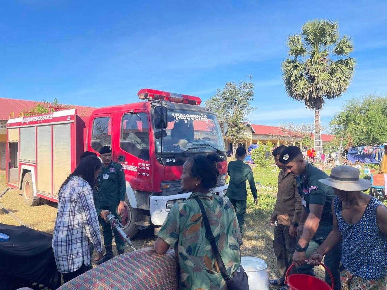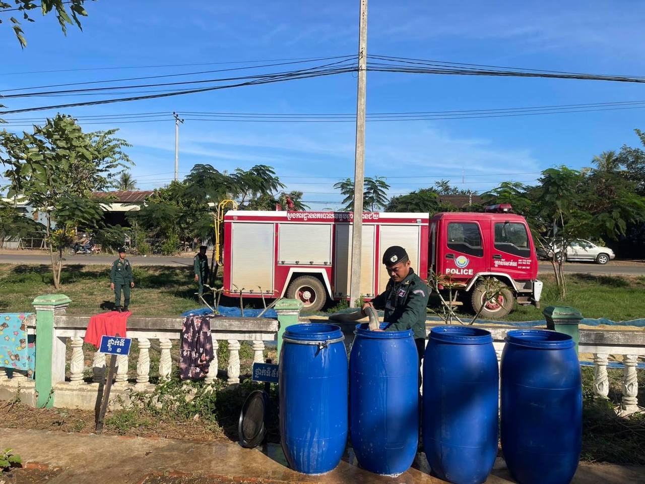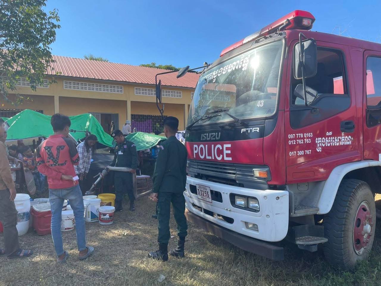 នៅរសៀលថ្ងៃអង្គារ៍នេះ លោកឧត្តមសេនីយ៍ត្រី ប៊ុន ផេង ស្នងការរង ផែនការងារគ្រប់គ្រងអាវុធគ្រឿងផ្ទុះ និងអគ្គីភ័យ, លោកលោកវរសេនីយ៍ទោ វឹក វើន នាយការិយាល័យបង្ការ ពន្លត់អគ្គិភ័យ និងសង្គ្រោះ បានដឹកនាំកម្លាំងនគរបាលជាច្រើនរូប បាននាំយករថយន្តដឹកទឹក ចំនួន០២គ្រឿង ចុះចែកទឹកដល់ ជនភាសឹកប្រើប្រាស់ ចំនួន០២មណ្ឌល រួមមាន ក្រុងសិរីសោភ័ណ គោលដៅមណ្ឌលកងវ៉ា ប្រើប្រាស់ទឹកអស់ចំនួន 02 រថយន្ត និងស្រុកមង្គលបូរី គោលដៅ ផ្សាបន្ទាយនាង(ផ្សារចំការតាដោក)។