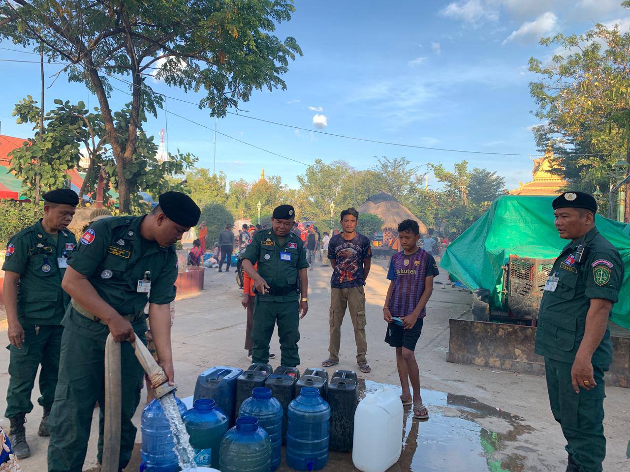 ខេត្តបន្ទាយមានជ័យ ៖ អនុវត្តតាមការដឹកនាំបញ្ជាដ៏ខ្ពង់ខ្ពស់របស់ ឯកឧត្តម នាយឧត្តមសេនីយ៍ ស ថេត អគ្គស្នងការនគរបាលជាតិ នៅថ្ងៃទី១៦ ខែធ្នូ ឆ្នាំ២០២៥ លោកឧត្តមសេនីយ៍ទោ សិទ្ធិ ឡោះ ស្នងការនៃស្នងការដ្ឋាននគរបាលខេត្តបន្ទាយមានជ័យ បានដាក់ចេញនូវបទបញ្ជាដល់កម្លាំងផែនជំនាញ និងកម្លាំងអធិការដ្ឋាននគរបាលតាមបណ្តាក្រុង/ស្រុក ត្រូវនាំគ្នាដឹកទឹកចុះចែកដល់ប្រជាពលរដ្ឋនៅតាមជុំរំភាសឹក ដែលពួកគាត់បានកំពុងស្នាក់នៅកំពុងជួបការខ្វះខាតទឹកប្រើប្រាស់ចាំបាច់ចំពោះមុខ។