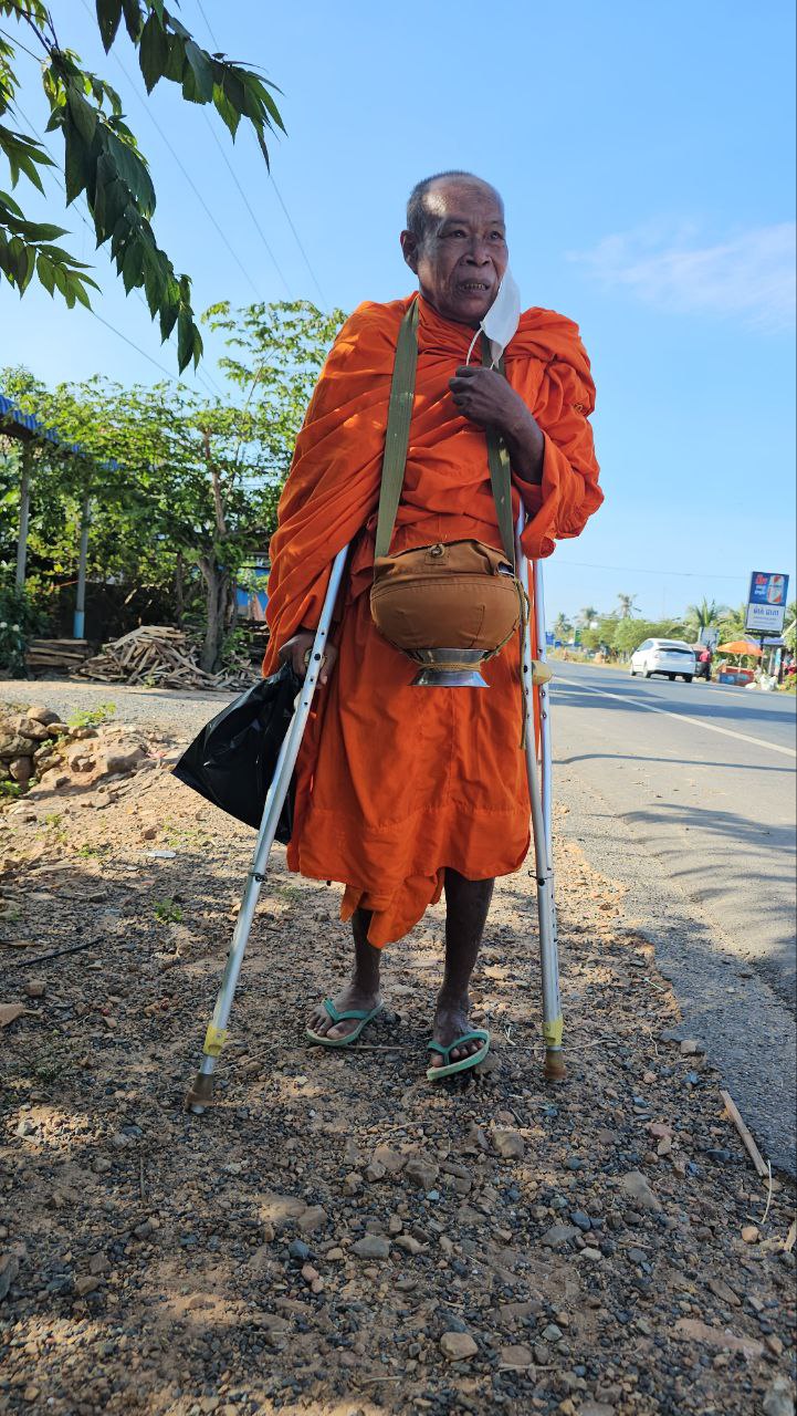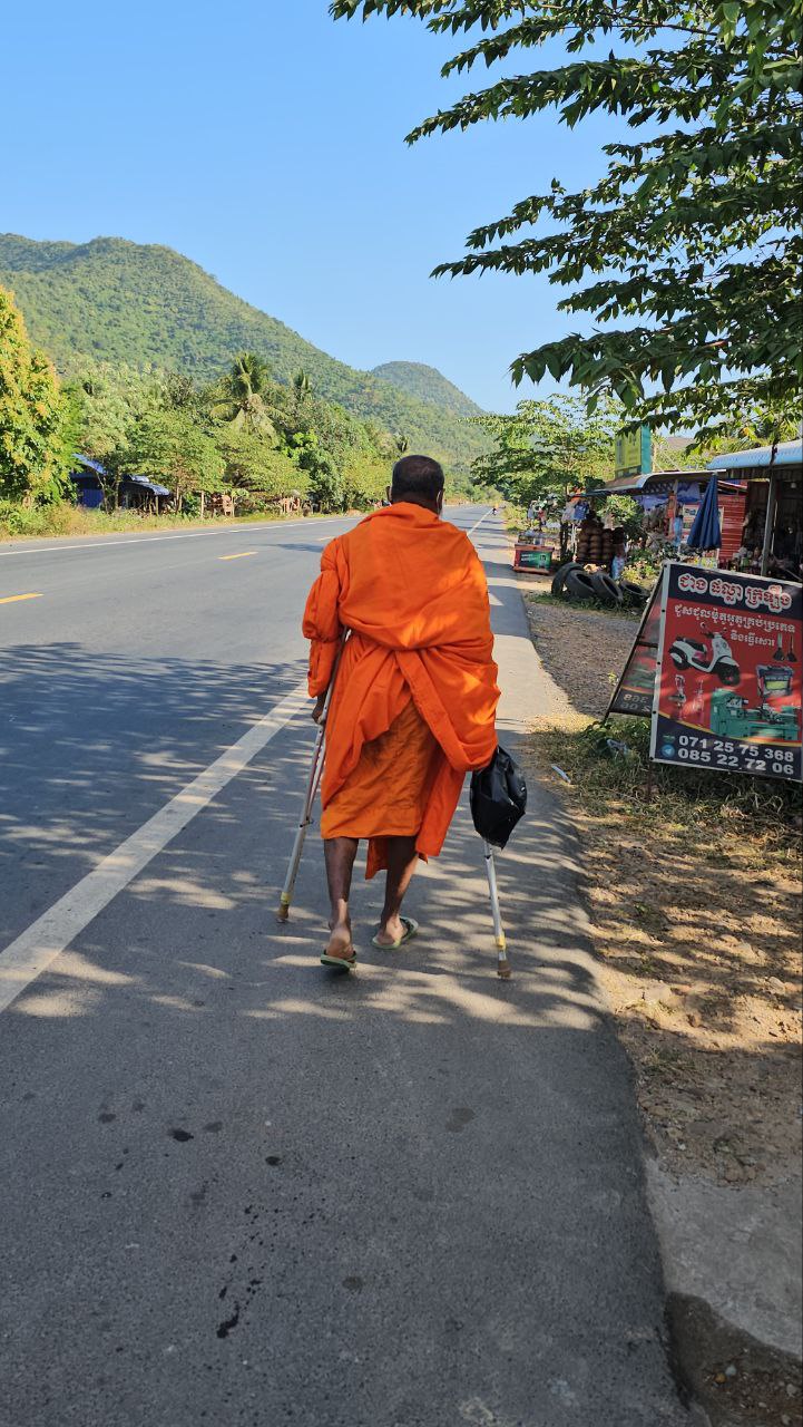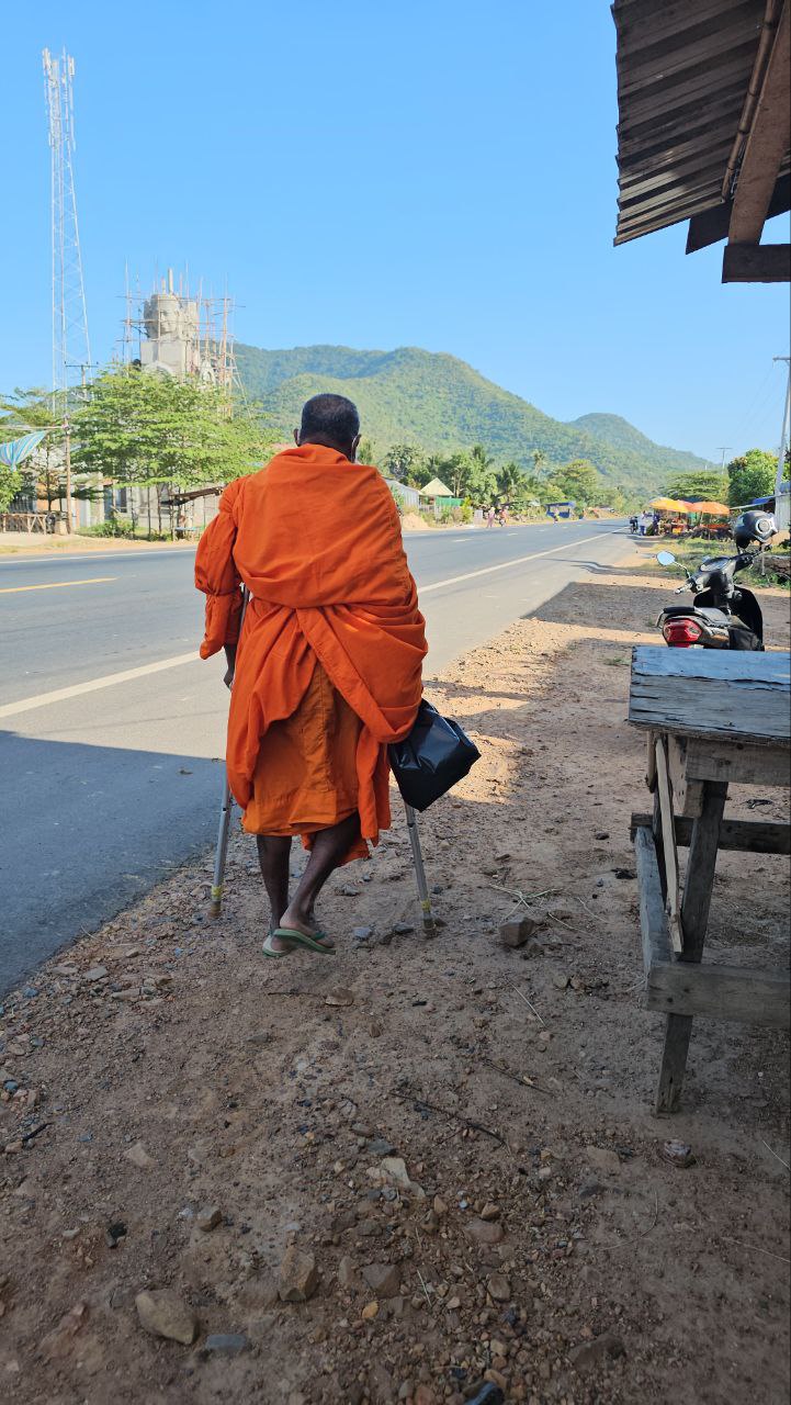 ខេត្តកំពត ៖ គួរឱ្យអាណិតអាសូរជាពន់ពេក ដោយសារតែការនិមន្តបិណ្ឌបាត្ររបស់ព្រះសង្ឃពិការមួយអង្គ មានស្ពាយបាត្រ និងព្រះហស្តទាំងទ្វេកាន់ឈើឈរច្រត់ទ្រព្រះកាយ ដែលជារៀងរាល់ព្រឹកគេតែងតែឃើញព្រះអង្គនិមន្តបិណ្ឌបាតលើដងផ្លូវជាតិលេខ 31នៅម្ដុំជិតភ្នំច្រកសៀម ជាប់ព្រំប្រទល់ទឹកដីស្រុកអង្គរជ័យ និងស្រុកបន្ទាយមាស ខេត្តកំពត ។