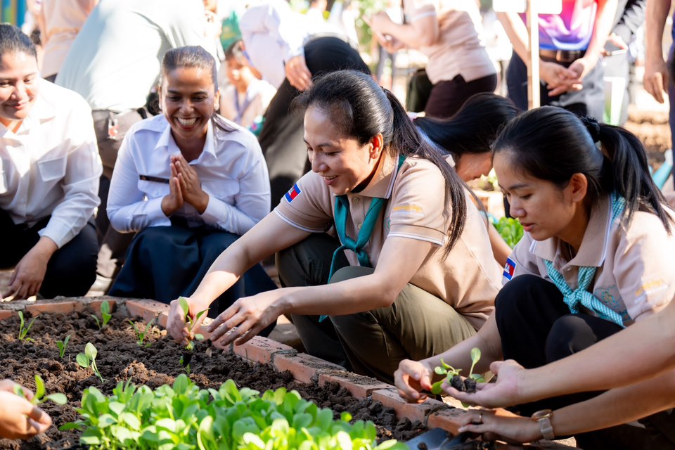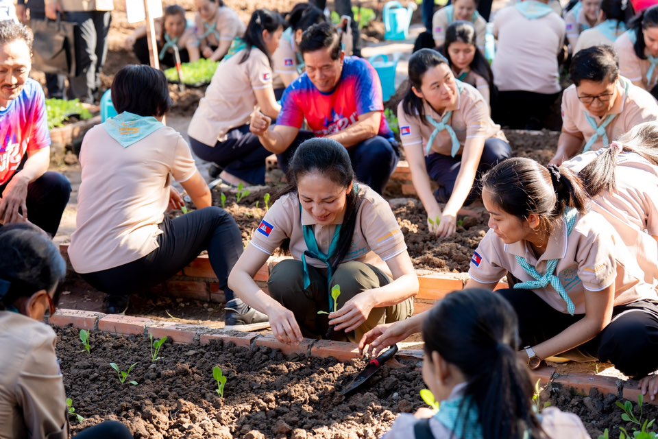 សូមរំលឹកថា ៖ ខណៈដែលវីរកងទ័ពកំពុងបូជាសាច់ស្រស់ឈាមស្រស់ នៅសមរភូមិ ដើម្បីទប់ទល់នឹងការឈ្លានពានរបស់សត្រូវ លោកជំទាវបានលើកទឹកចិត្តឱ្យពលរដ្ឋគ្រប់រូប ប្រែក្លាយទីធ្លាផ្ទះ សាលារៀន និងវត្តអារាម ឱ្យទៅជាឃ្លាំងស្បៀង ។ គ្រប់បន្លែ គ្រប់ផ្លែឈើ ដែលបងប្អូនដាំបាន នឹងក្លាយជាការគាំទ្រជាក់ស្តែង និងជាកម្លាំងចិត្តមិនអាចកាត់ថ្លៃបាន សម្រាប់អ្នកការពារជាតិ និងបងប្អូនជនភៀសសឹកដែលកំពុងរងទុក្ខ ៕