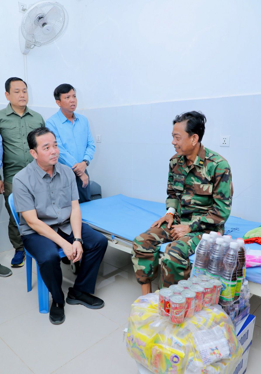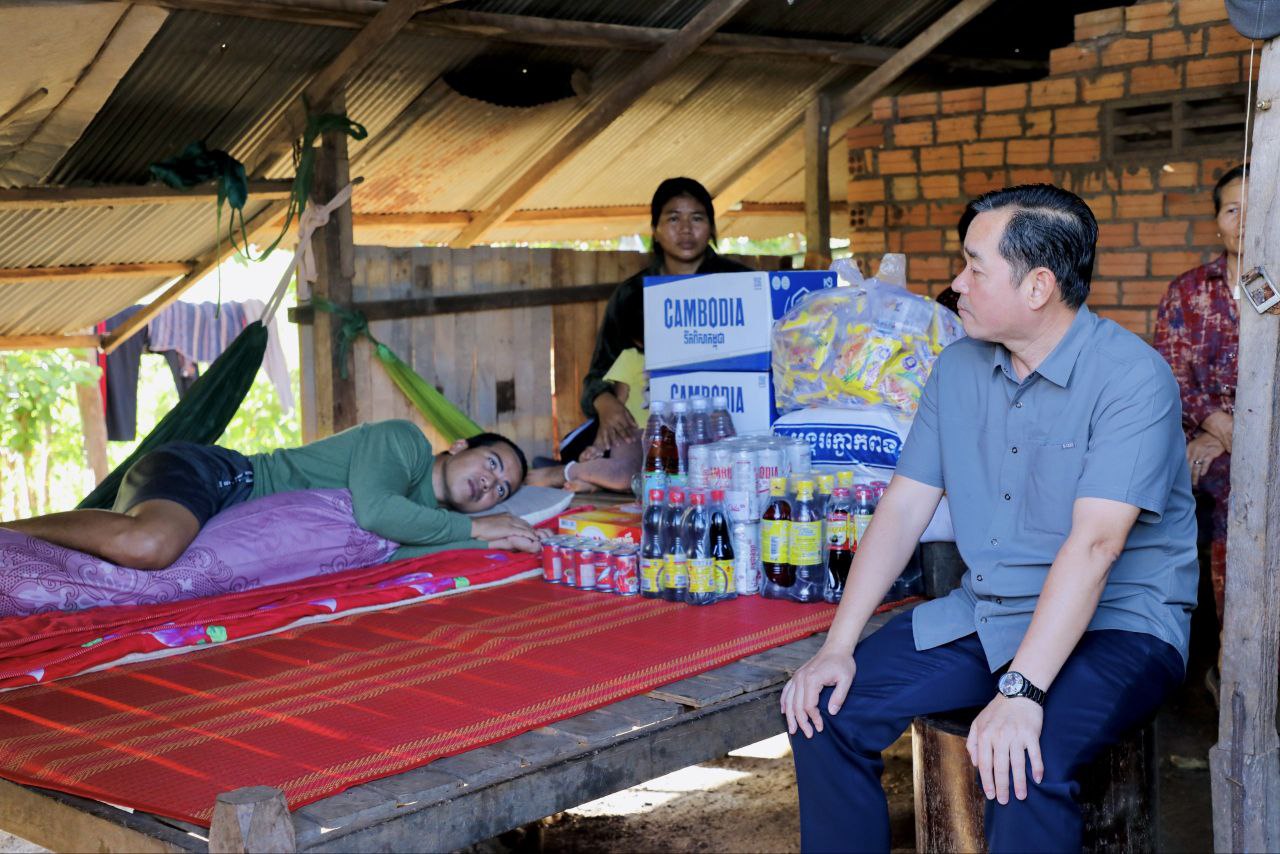 ដោយឡែក លោក សាំង បូរ៉ាន អាយុ ៣៣ឆ្នាំ ជាវីរកងទ័ពជួរមុខឈរជើងនៅជាំតែ សុំសម្រាកព្យាបាលជំងឺនៅផ្ទះ ស្ថិតក្នុងឃុំសំពងជ័យ ស្រុកជើងព្រៃក៏ត្រូវបានអភិបាលខេត្តអញ្ជើញចុះជួបផ្ទាល់សំណេះសំណាល និងលើកកម្លាំងចិត្តព្រមទាំងផ្ដល់ស្បៀងអាហារសម្រាប់ទ្រទ្រង់ជីវភាពគ្រួសារផងដែរ ៕