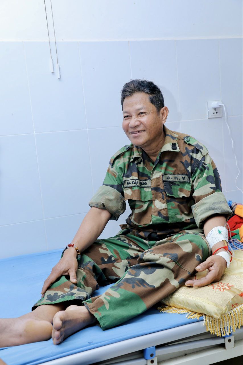 តែគួរឱ្យអាណិតវីរយុទ្ធជនរូបនេះត្រូវបានរងការបាញ់ផ្សែងពុលពីយន្តហោះចម្បាំង F16 របស់ថៃ ធ្វើឱ្យសុខភាពគាត់មានការចុះខ្សោយ និងបានបញ្ជូនមកសម្រាកព្យាបាលនៅមន្ទីរពេទ្យបង្អែកស្រុកជើងព្រៃ ។ ជាមួយនោះត្រូវបានឯកឧត្តម អ៊ុន ចាន់ដា អភិបាលខេត្ត រួមនឹងសហការីអញ្ជើញចុះសួរសុខទុក្ខ និងលើកកម្លាំងចិត្តដើម្បីឲ្យឆាប់ជាវិលត្រឡប់ទៅកាន់សមរភូមិវិញ ។