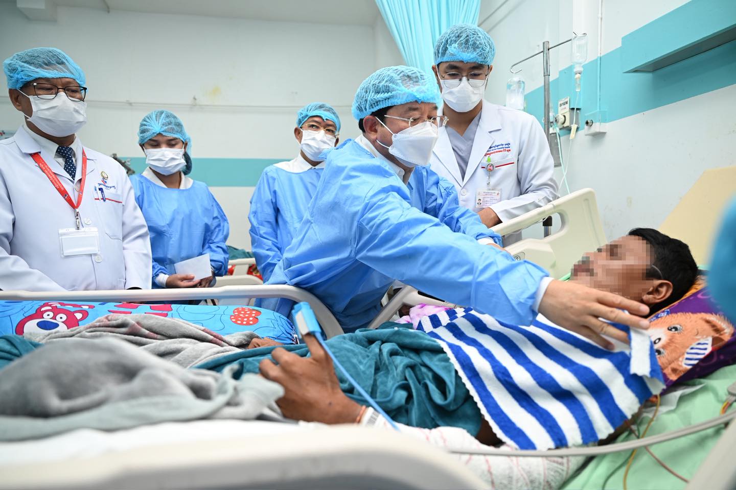 ជាក់ស្តែង នាព្រឹកថ្ងៃពុធ ទី១៧ ខែធ្នូ ឆ្នាំ២០២៥ លោក ឈាង រ៉ា រដ្ឋមន្ត្រីក្រសួងសុខាភិបាល និងថ្នាក់ដឹកនាំក្រសួងសុខាភិបាល បានបន្តអញ្ជើញចុះសួរសុខទុក្ខវីរកងទ័ព ដែលកំពុងសម្រាកព្យាបាលជំងឺ នៅមន្ទីរពេទ្យមិត្តភាពខ្មែរ-សូវៀត ។