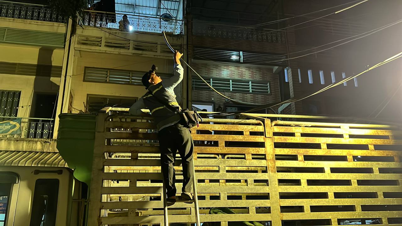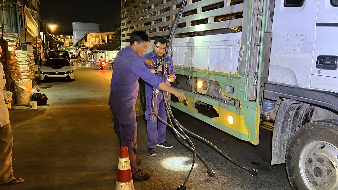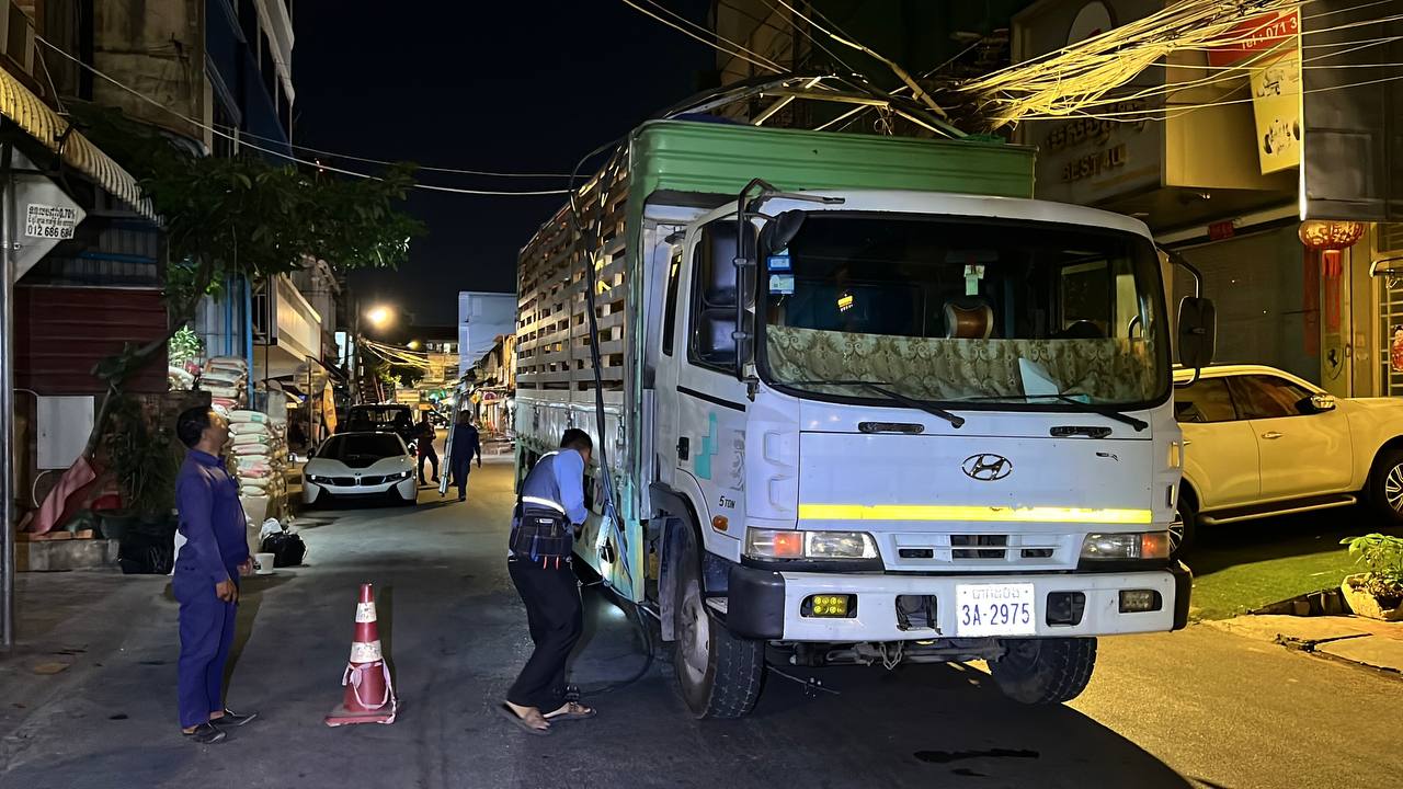 រាជធានីភ្នំពេញ ៖ រថយន្តដឹកទំនិញធុនធំ១គ្រឿង ដែលមានកម្ពស់ខ្ពស់ បានបើកទាក់ខ្សែភ្លើង បណ្តាលឲ្យដាច់ខ្សែ និងដាច់ប្រព័ន្ធភ្លើង កាលពីវេលាម៉ោង ៨ និង៣០នាទីយប់ ថ្ងៃទី១៨ ខែធ្នូ ឆ្នាំ២០២៥ នៅតាមបណ្តោយផ្លូវលេខ ២១៩ សង្កាត់ផ្សារដេប៉ូទី១ ខណ្ឌទួលគោក រាជធានីភ្នំពេញ ។