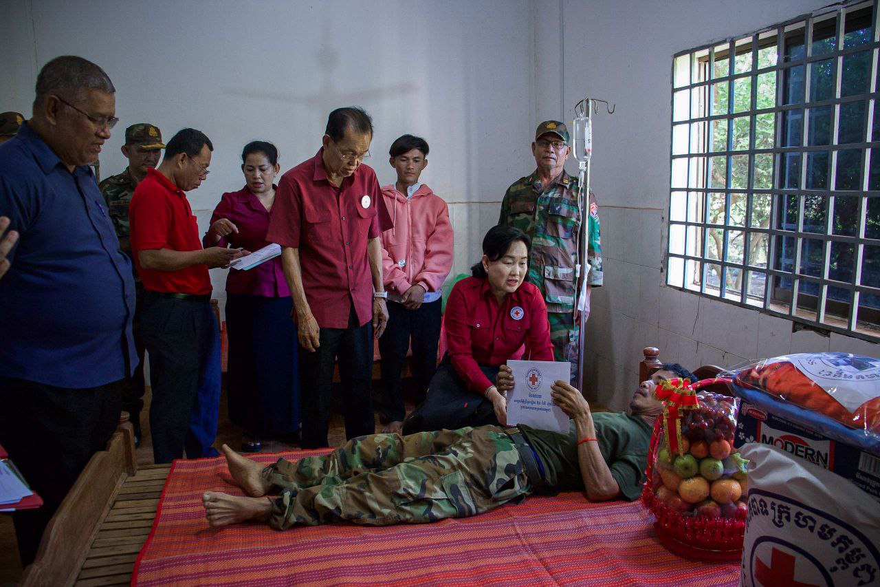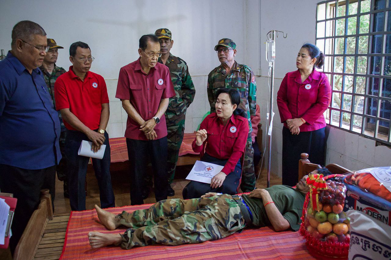 ខេត្តកំពង់ចាម ៖ ដោយមានការចង្អុល បង្ហាញពីសំណាក់ឯកឧត្តម អ៊ុន ចាន់ដា ប្រធានគណកម្មាធិការសាខា បានចាត់លោកជំទាវ ប៉ាង ដានី អនុប្រធានអចិន្ត្រៃយ៍សាខា អមដំណើរដោយសការីនិងប្រធានមន្ទីរពេទ្យយោធភូមិភាគទី២( 7 D) ស្ថិតនៅក្នុងស្រុកកំពង់សៀម បានអញ្ជើញចុះសួរសុខទុក្ខវីរកងទ័ព៥រូប កំពុងសម្រាកព្យាបាលជំងឺនៅថ្ងៃទី១៧ ធ្នូ ឆ្នាំ២០២៥ ក្នុងមនោសញ្ជេតនានិងឱ្យក្រុមគ្រូពេទ្យយកចិត្តទុកដាក់ជួយព្យាបាលធ្វើយ៉ាងណាឱ្យឆាប់ជាសះស្បើយពីជំងឺ។
