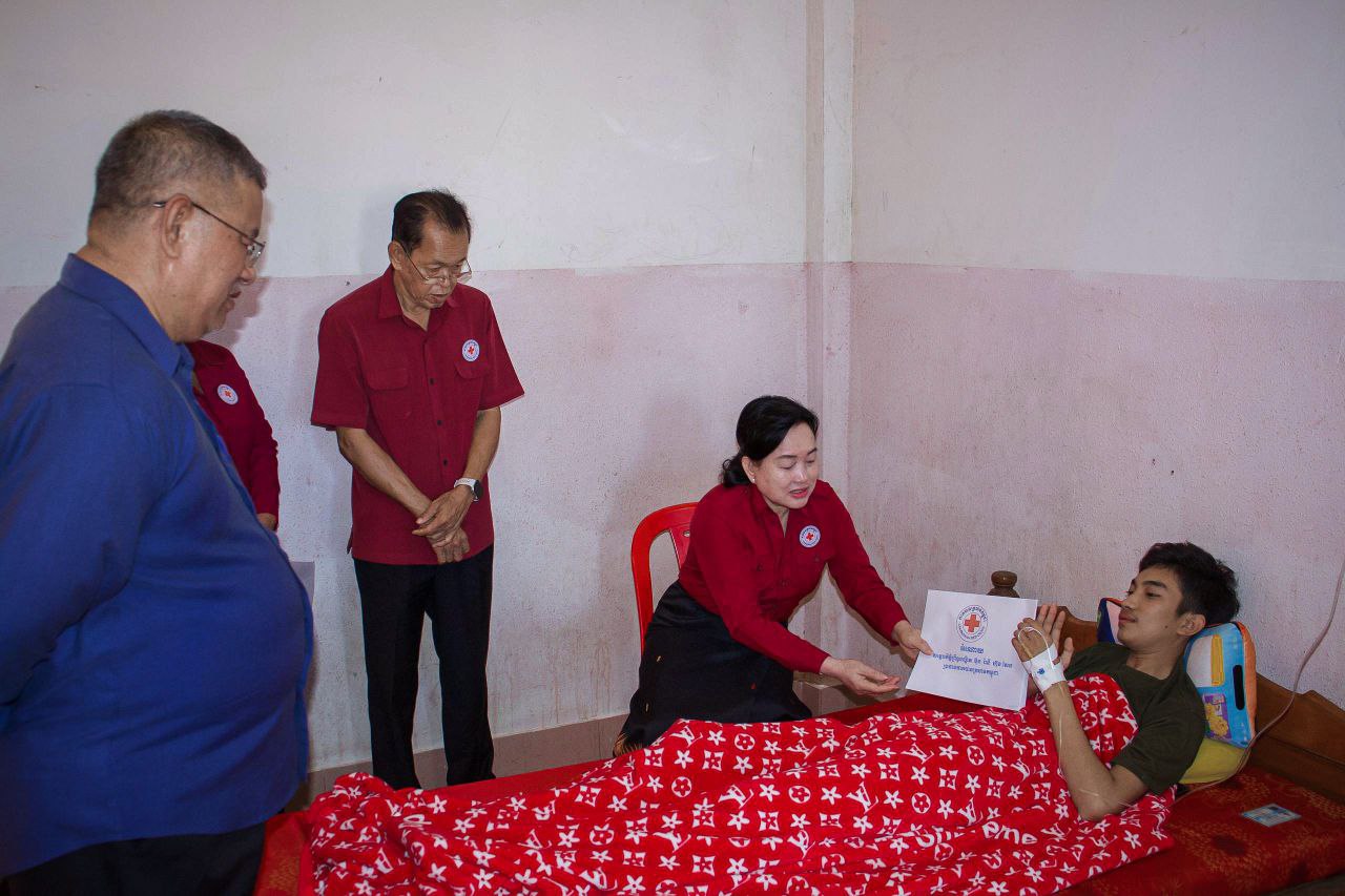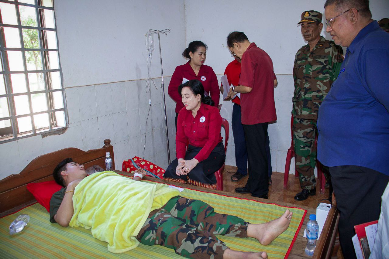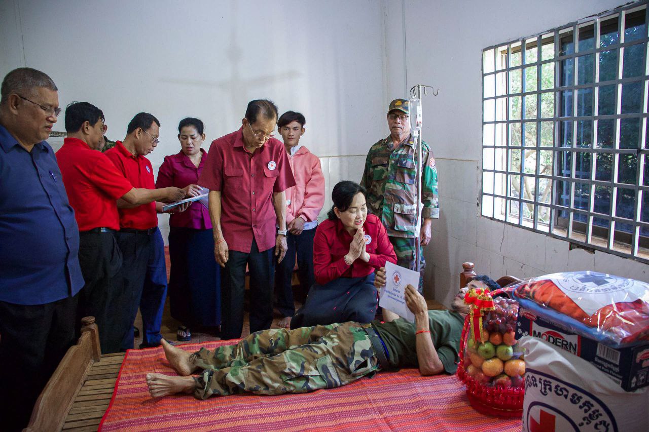 លោកជំទាវ ក៏បាននាំយកបណ្តាំផ្ញើសាកសួរសុខដោយក្តីនឹករលឹក និងអាណិតអាសូរបំផុត ពីឯកឧត្តម អ៊ុន ចាន់ដា ប្រធានគណៈកម្មាធិការសាខា និងឯកឧត្តម សន្តិបណ្ឌិត នេត សាវឿន ប្រធានកិត្តិយសសាខា ពិសេសពី សំណាក់ សម្តេចកិត្តិព្រឹទ្ធបណ្ឌិត ប៊ុន រ៉ានី ហ៊ុនសែន ប្រធានកាកបាទក្រហមកម្ពុជា ដែលជានិច្ចកាល សម្តេចប្រធាន តែងតែ បានណែនាំអោយ គ្រប់បណ្តាញការងារគ្រប់ថ្នាក់ របស់កាកបាទក្រហមកម្ពុជា យកចិត្តទុកដាក់ ជួយដោះស្រាយសម្រាលទុក្ខលំបាកដល់ពលរដ្ឋរងគ្រោះ និង ងាយរងគ្រោះ អោយទាន់ពេលវេលា ពិសេស ត្រូវគិតគូរ ផ្តោតអាទិភាពទៅលើយោធិនរបួស ពិការ យោធិនមានជម្ងឺ គ្រួសារកងទ័ពជួរមុខ និងពលរដ្ឋភៀសសឹក ជាសំខាន់ ។
