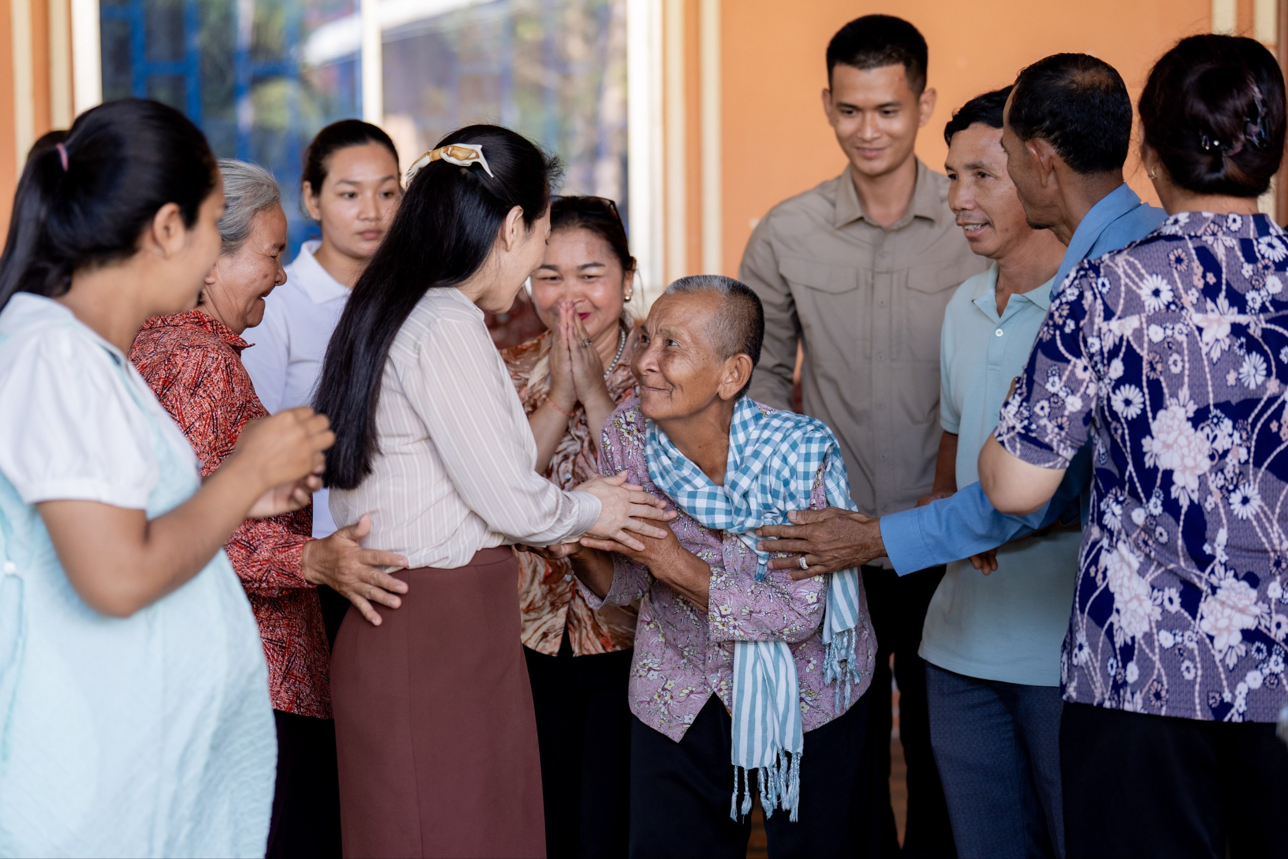 ក្នុងឱកាសជួបសំណេះសំណាលនេះដែរ លោកជំទាវបណ្ឌិត បានពាំនាំនូវប្រសាសន៍ផ្តាំផ្ញើសួរសុខទុក្ខ និងជូនពរដ៏ខ្ពង់ខ្ពស់បំផុតរបស់ សម្តេចអគ្គមហាសេនាបតីតេជោ ហ៊ុនសែន សម្តេចកិត្តិព្រឹទ្ធបណ្ឌិត ប៊ុន រ៉ានី ហ៊ុនសែន រួមជាមួយ សម្តេចមហាបវរធិបតី ហ៊ុន ម៉ាណែត ជូនក្រុមគ្រួសារយោធិន ដោយសូមឱ្យមានសុខភាពល្អ មាំមួន ទាំងម្តាយទាំងកូន និងមានសុវត្ថិភាពចំពោះស្វាមីជាយោធិនដែលកំពុងប្រយុទ្ធយ៉ាងអង់អាចការពារទឹកដីពីសត្រូវសៀមឈ្លានពាន ។