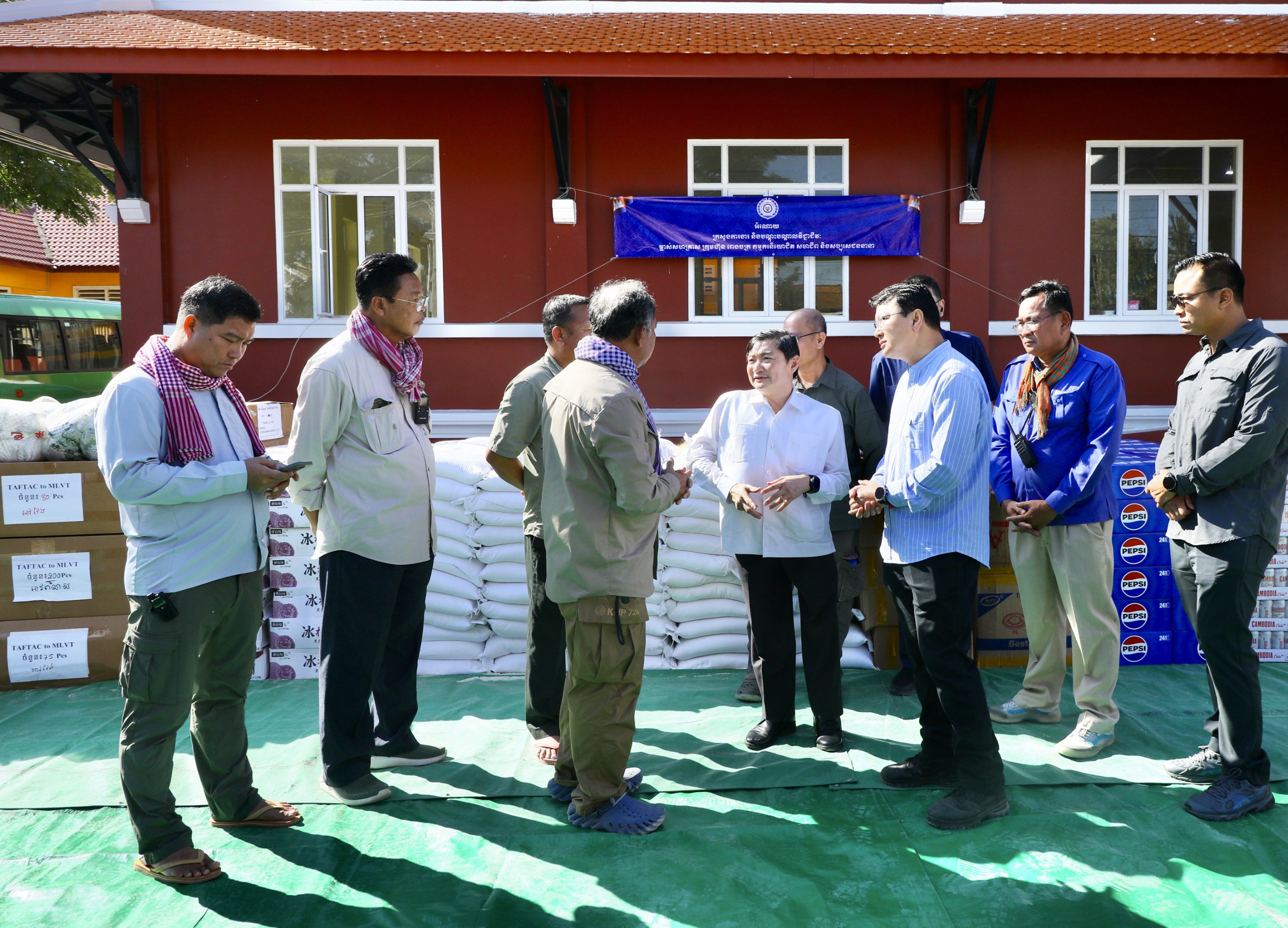 បន្ទាយមានជ័យ ៖ នាព្រឹកថ្ងៃទី ១៩ ខែធ្នូ ឆ្នាំ ២០២៥ នេះ ឯកឧត្តម ហេង សួរ រដ្ឋមន្ត្រីក្រសួងការងារ និងបណ្ដុះបណ្ដាលវិជ្ជាជីវៈ បានដឹកនាំថ្នាក់ដឹកនាំមន្ត្រីក្រសួង តំណាងនិយោជក សហគ្រាស ក្រុមហ៊ុន រោងចក្រ និងអង្គភាពពាក់ព័ន្ធ ចុះសំណេះសំណាល សួរសុខទុក្ខ និងនាំយកអំណោយជាសម្ភារគ្រឿងឧបភោគបរិភោគ សម្រាប់ផ្តល់ជូនបងប្អូនប្រជាពលរដ្ឋភៀសសឹក ក្រុមគ្រួសារកងទ័ព និងវីរកងទ័ព នៅក្នុងខេត្តបន្ទាយមានជ័យ ។ អំណោយទាំងនេះ ត្រូវបានប្រគល់ជូនឯកឧត្តម ឌិត ទីណា រដ្ឋមន្ត្រី ក្រសួងកសិកម្ម រុក្ខាប្រមាញ់ និងនេសាទ និងជាប្រធានក្រុមការងាររាជរដ្ឋាភិបាលចុះមូលដ្ឋានខេត្តបន្ទាយមានជ័យ និងឯកឧត្តម អ៊ុ រាត្រី អភិបាលនៃគណៈអភិបាលខេត្តបន្ទាយមានជ័យ ។