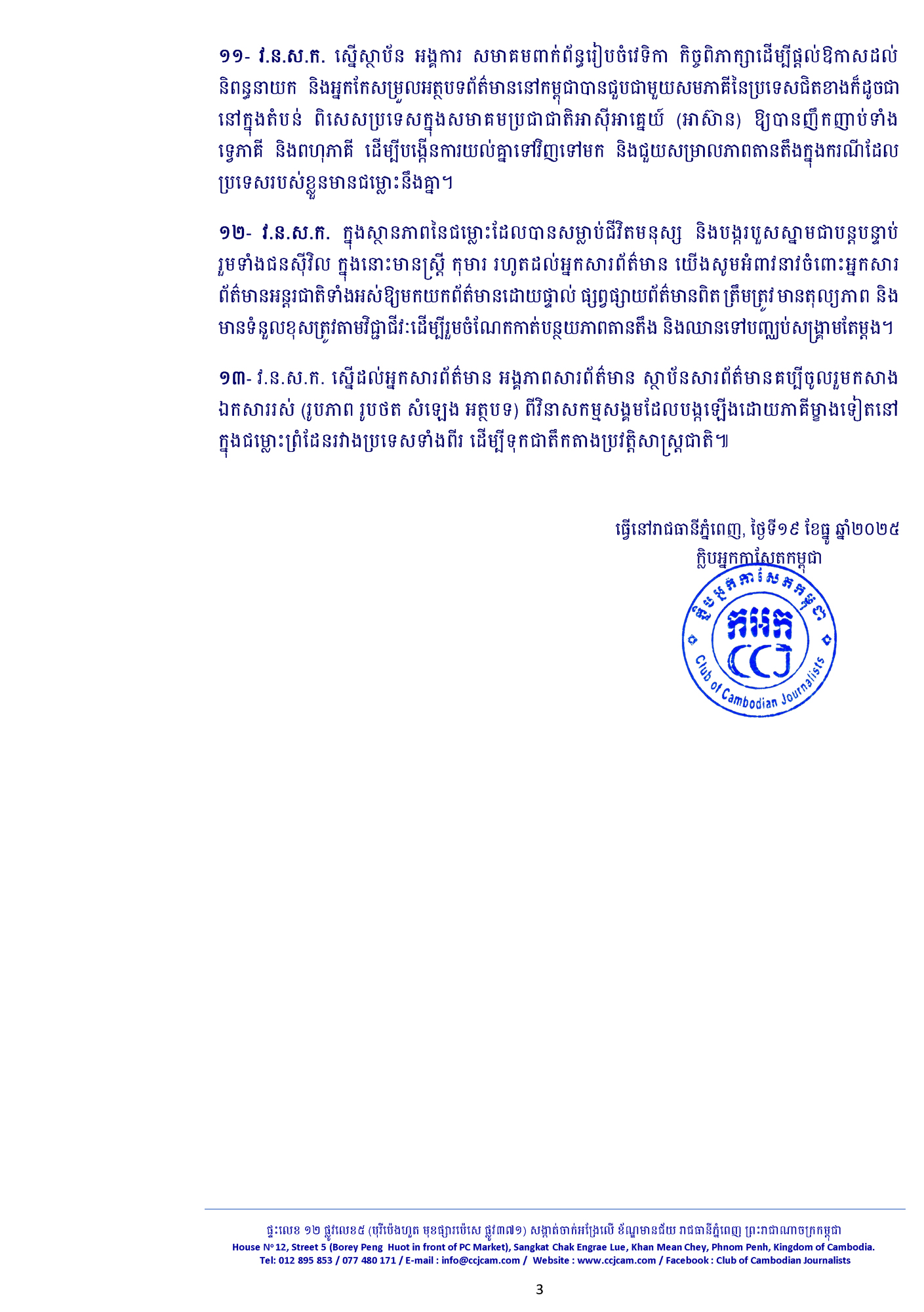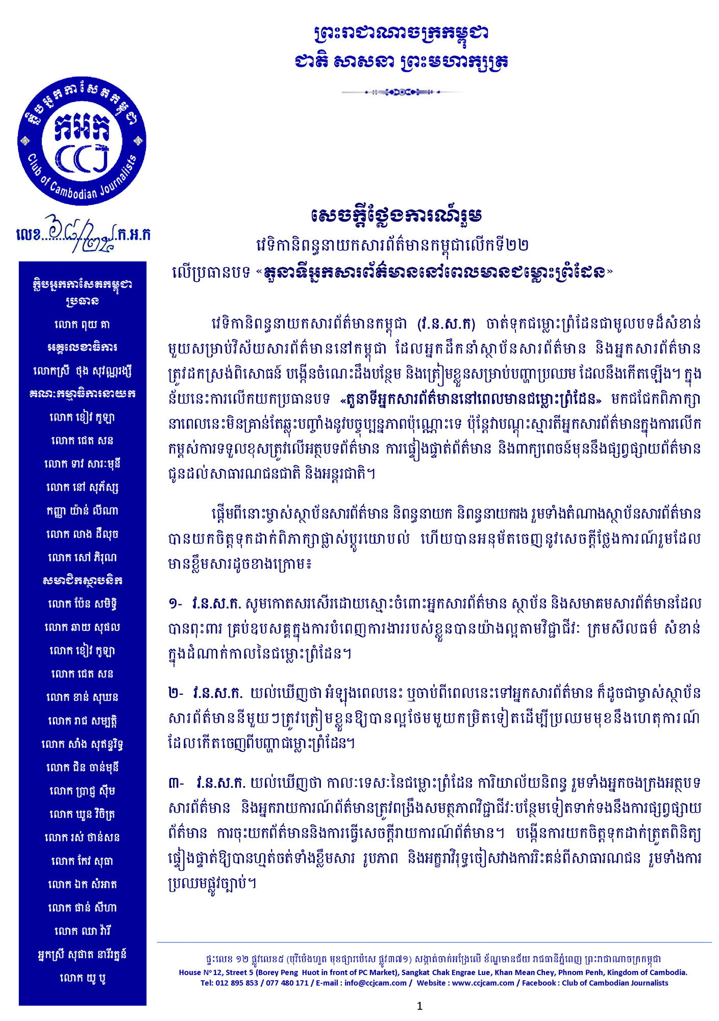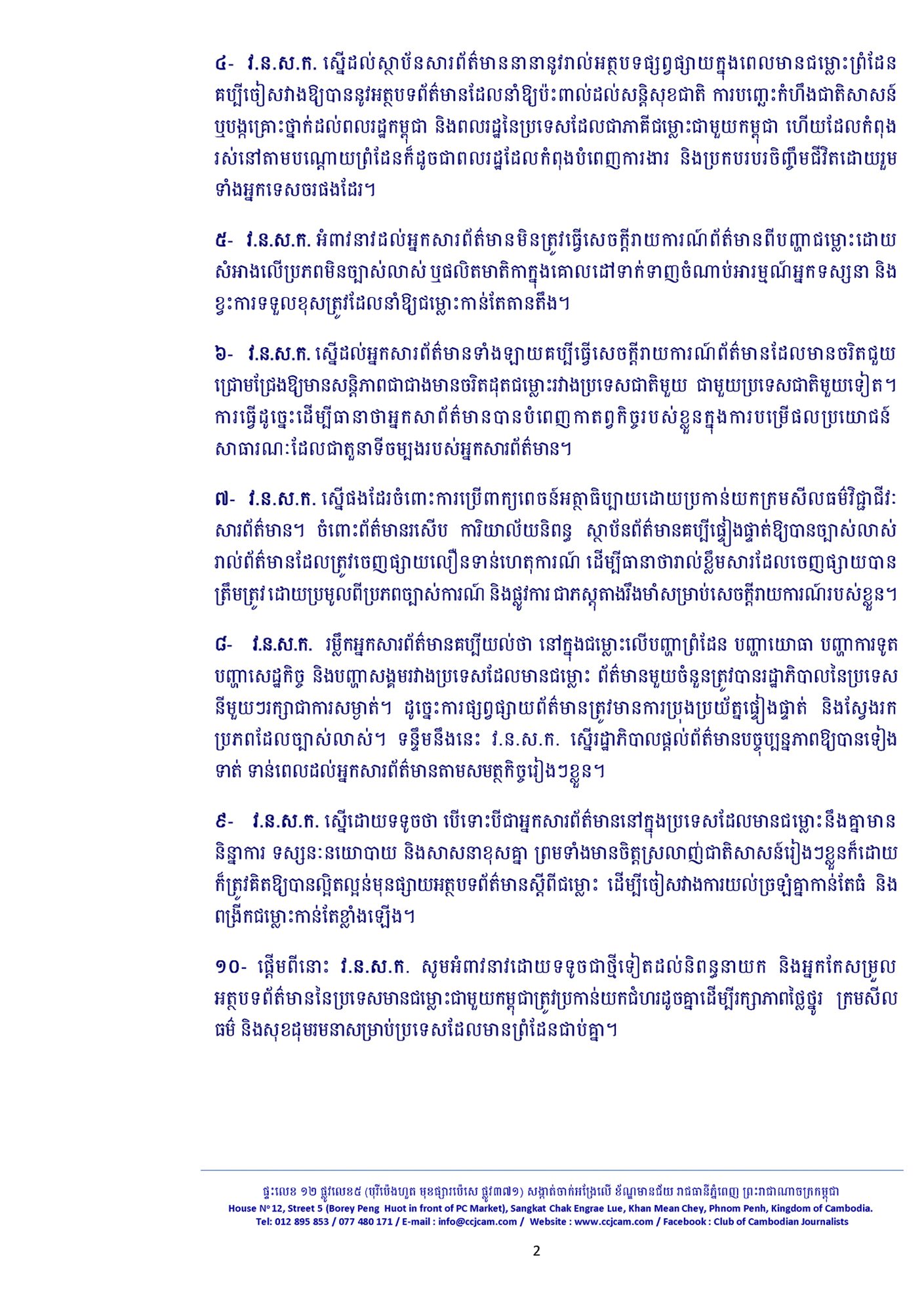 ក្លិបអ្នកកាសែតកម្ពុជា ៖ «តួនាទីអ្នកសារព័ត៌មាននៅពេលមានជម្លោះព្រំដែន»