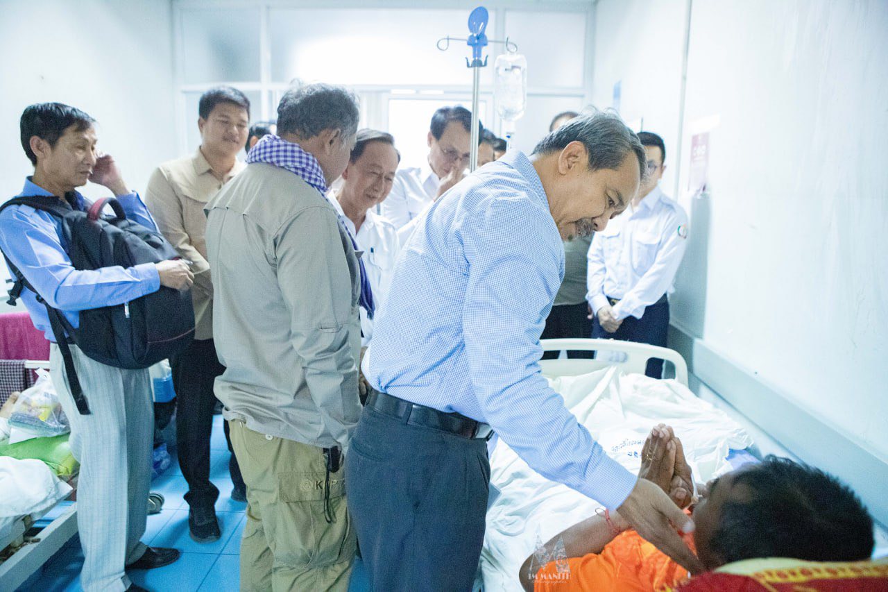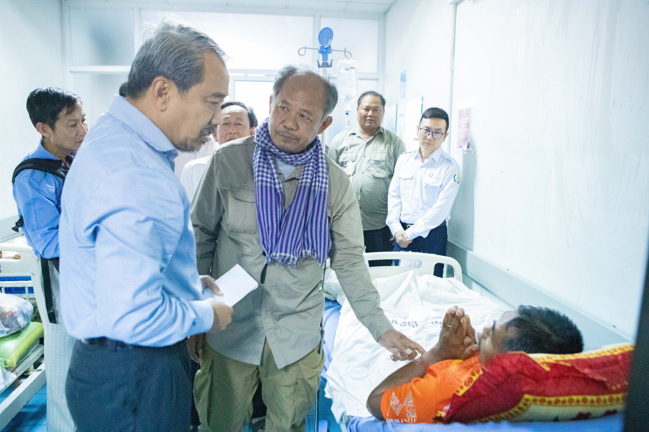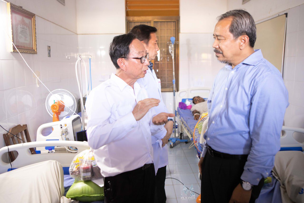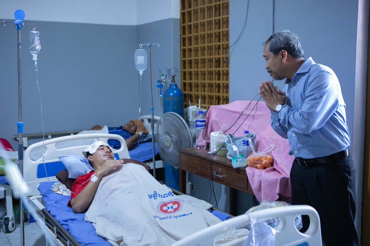 ខេត្តបន្ទាយមានជ័យ ៖ នៅថ្ងៃទី១៩ ខែធ្ន ឆ្នាំ២០២៥ ឯកឧត្តមទេសរដ្ឋមន្ត្រី កែវ រ៉េមី ប្រធានគណៈកម្មាធិការសិទ្ធិមនុស្សកម្ពុជា (គ.ស.ម.ក.) បានដឹកនាំក្រុមការងារ គ.ស.ម.ក. ចូលរួមចុះសុខទុក្ខវីរកងទ័ពខ្មែរ ប្រមាណជិត៤០នាក់ ដែលបានរងរបួស និងកំពុងសម្រាកទទួលការព្យាបាលនៅមន្ទីរពេទ្យមិត្តភាពកម្ពុជា-ជប៉ុនមង្គលបូរី ស្ថិតក្នុងខេត្តបន្ទាយមានជ័យ ដោយមានការចូលរួមពីសំណាក់លោក អ៊ុំ រាត្រី អភិបាល នៃគណៈអភិបាលខេត្តបន្ទាយមានជ័យ និងលោកវេជ្ជបណ្ឌិត ទុ បារាំង ប្រធានមន្ទីរពេទ្យមិត្តភាពកម្ពុជា-ជប៉ុនមង្គលបូរី ផងដែរ។
