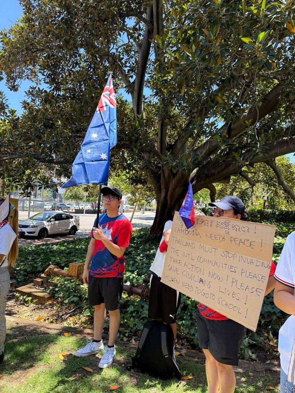 ទីក្រុងភឺត, អូស្ត្រាលី ៖ នៅព្រឹកថ្ងៃសៅរ៍ ទី២០ ខែធ្នូ ឆ្នាំ២០២៥ បងប្អូនពលរដ្ឋខ្មែរ ប្រមាណជាង ៣០០នាក់ ដែលកំពុងរស់នៅក្នុងទីក្រុងភឺត ប្រទេសអូស្ត្រាលី បានរៀបចំការជួបជុំធ្វើបាតុកម្មដោយសន្តិវិធី ដើម្បីសម្តែងមតិប្រឆាំងការរំលោភបំពានលើបូរណភាពទឹកដីពីសំណាក់ប្រទេសថៃ មកលើបូរណភាពទឹកដីកម្ពុជា ។
