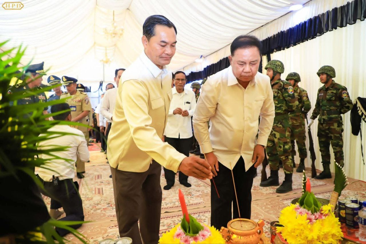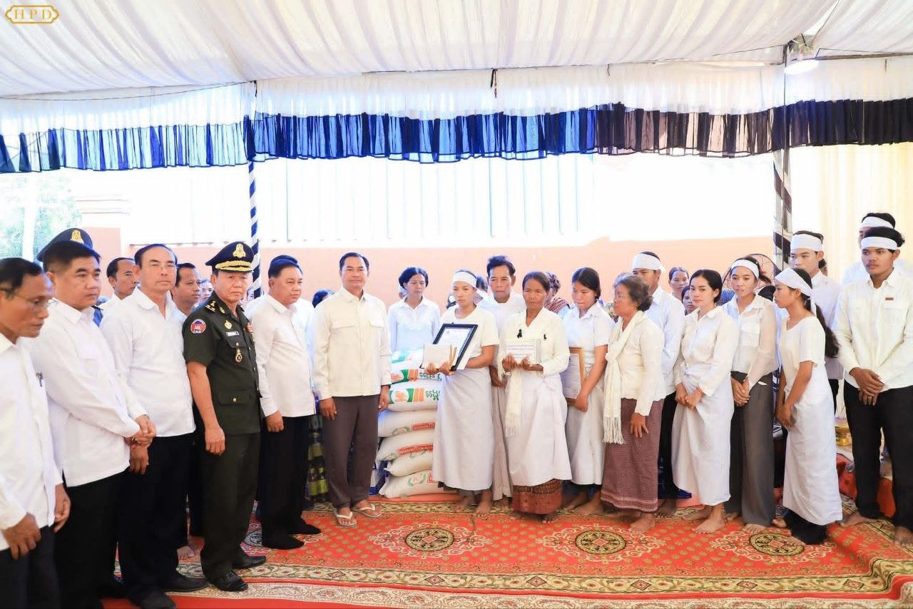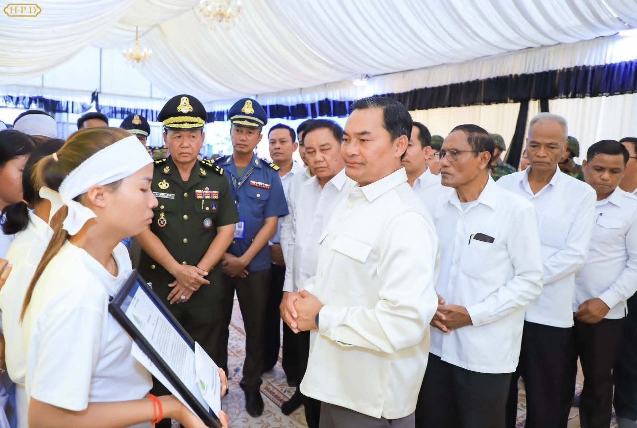 ខេត្តកំពង់ស្ពឺ៖ កាលពីរសៀលថ្ងៃទី១៩ ខែធ្នូ ឆ្នាំ២០២៥ ឯកឧត្តម យឹម សុខុម ប្រធានក្រុមប្រឹក្សាខេត្ត និងឯកឧត្តម ជាម ច័ន្ទសោភ័ណ អភិបាលខេត្តកំពង់ស្ពឺ ដឹកនាំថ្នាក់ដឹកនាំមន្ត្រីរាជការ បាននាំយកសារលិខិតរំលែកទុក្ខ និងថវិកា របស់សម្តេចមហាបវរធិបតី ហ៊ុន ម៉ាណែត នាយករដ្ឋមន្ត្រីនៃព្រះរាជាណាចក្រកម្ពុជា ចូលរួមរំលែកទុក្ខដ៏ក្រៀមក្រំបំផុតជាមួយក្រុមគ្រួសារនៃសព វីរកងទ័ពលោកអនុ សេនីយ៍ឯក ខាត់ សុខលី ដែលកំពុងធ្វើបុណ្យ ស្ថិតនៅក្នុងភូមិធ្លក ឃុំទួលសាលា ស្រុកបសេដ្ឋ ខេត្តកំពង់ស្ពឺ ដែលបានពលីជីវិតនៅសមរភូមិ ភូមិប្រាសាទតាមាន់ នៅវេលាម៉ោង ១០:២២នាទីយប់ នាថ្ងៃទី១៣ ខែធ្នូ ឆ្នាំ២០២៥ ក្នុងកំឡុងពេលប៉ះទង្គិចក្នុងសមរភូមិជាមួយកងទ័ពឈ្លានពានថៃ នៅតាមបណ្តោយព្រំដែនការពារបូរណភាពទឹកដីកម្ពុជា។