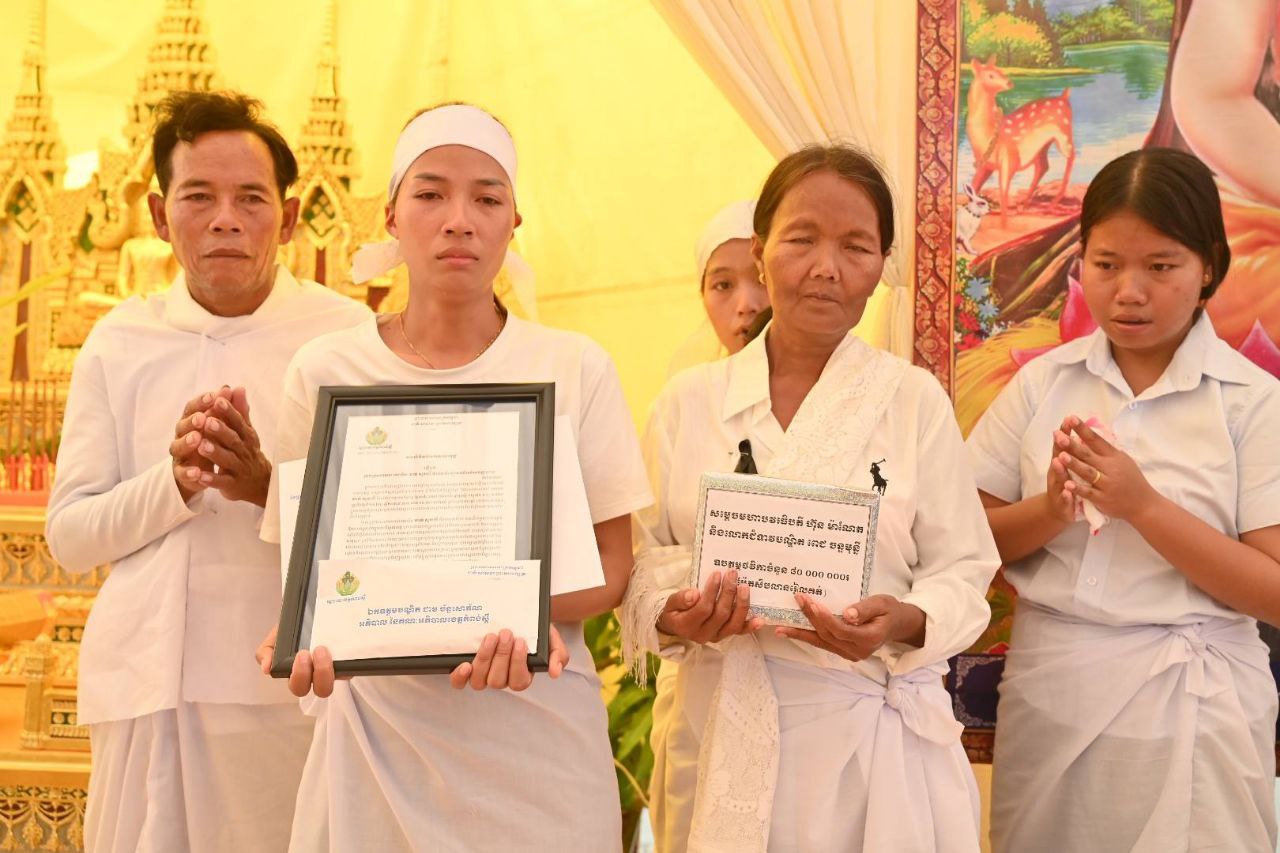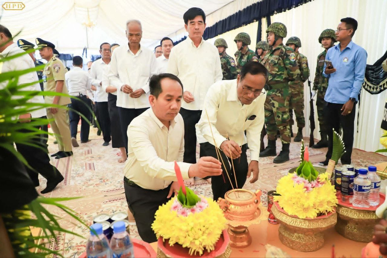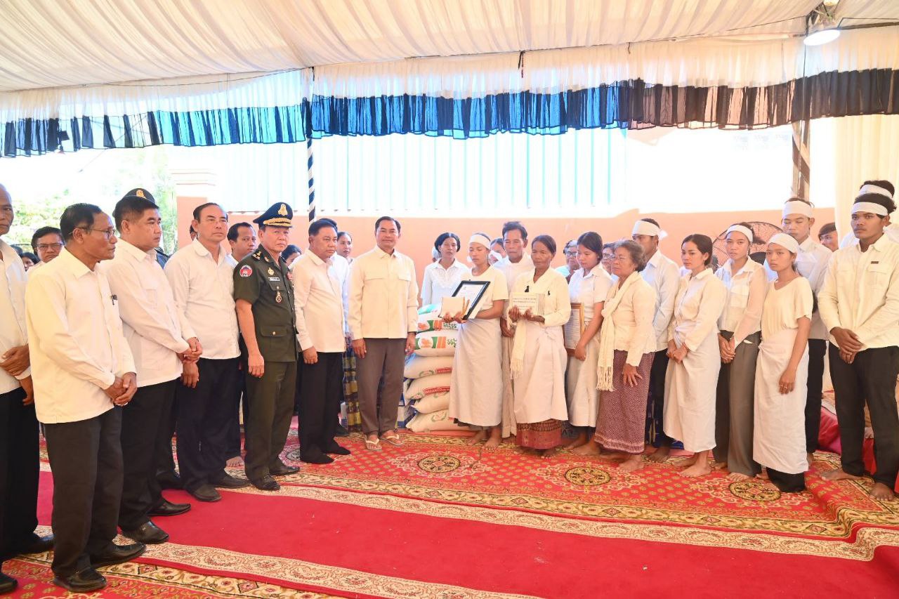 ខេត្តកំពង់ស្ពឺ៖ កាលពីរសៀលថ្ងៃទី១៩ ខែធ្នូ ឆ្នាំ២០២៥ ឯកឧត្តម យឹម សុខុម ប្រធានក្រុមប្រឹក្សាខេត្ត និងឯកឧត្តម ជាម ច័ន្ទសោភ័ណ អភិបាលខេត្តកំពង់ស្ពឺ ដឹកនាំថ្នាក់ដឹកនាំមន្ត្រីរាជការ បាននាំយកសារលិខិតរំលែកទុក្ខ និងថវិកា របស់សម្តេចមហាបវរធិបតី ហ៊ុន ម៉ាណែត នាយករដ្ឋមន្ត្រីនៃព្រះរាជាណាចក្រកម្ពុជា ចូលរួមរំលែកទុក្ខដ៏ក្រៀមក្រំបំផុតជាមួយក្រុមគ្រួសារនៃសព វីរកងទ័ពលោកអនុ សេនីយ៍ឯក ខាត់ សុខលី ដែលកំពុងធ្វើបុណ្យ ស្ថិតនៅក្នុងភូមិធ្លក ឃុំទួលសាលា ស្រុកបសេដ្ឋ ខេត្តកំពង់ស្ពឺ ដែលបានពលីជីវិតនៅសមរភូមិ ភូមិប្រាសាទតាមាន់ នៅវេលាម៉ោង ១០:២២នាទីយប់ នាថ្ងៃទី១៣ ខែធ្នូ ឆ្នាំ២០២៥ ក្នុងកំឡុងពេលប៉ះទង្គិចក្នុងសមរភូមិជាមួយកងទ័ពឈ្លានពានថៃ នៅតាមបណ្តោយព្រំដែនការពារបូរណភាពទឹកដីកម្ពុជា។