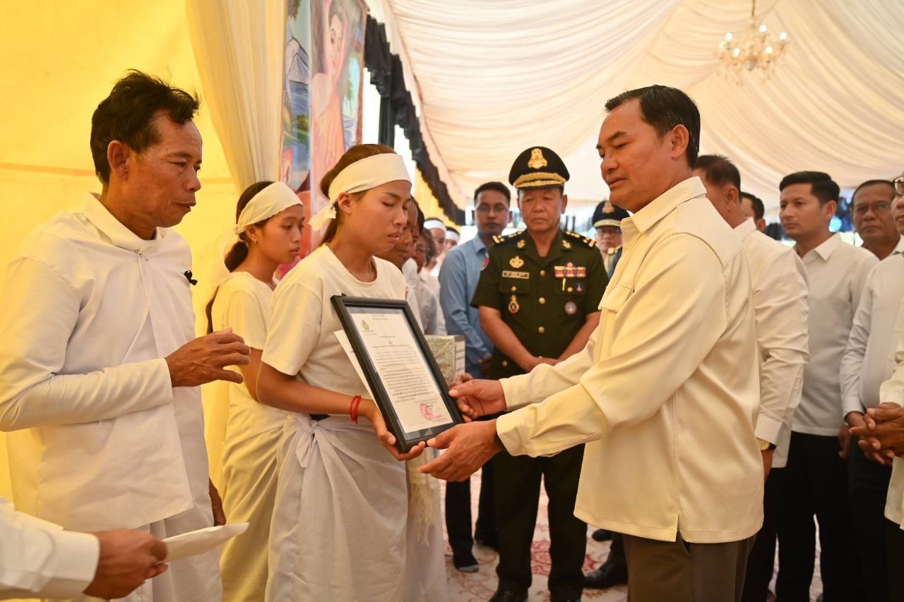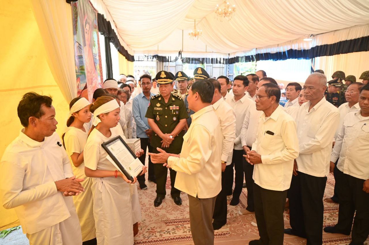 រដ្ឋបាលខេត្តកំពង់ស្ពឺ នាំយកសារលិខិតរំលែកទុក្ខរបស់សម្តេចបវរធិបតី ហ៊ុន ម៉ាណែត ជូនគ្រួសារស.ពវីរកងទ័ព
