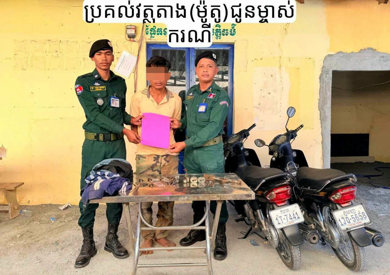 ខេត្តកំពង់ស្ពឺ ៖ ជនសង្ស័យជាចោរលួចម៉ូតូម្នាក់ត្រូវបានកម្លាំងនគរបាលស្រុកគងពិសីធ្វើការសហការជាមួយកម្លាំងនគរបាលខេត្តកំពតធ្វើការស្រាវជ្រាវឃាត់ខ្លួនបាន ខណៈដែលជនសង្ស័យខាងលើធ្វើសកម្មភាពលួចម៉ូតូប្រជាពលរដ្ឋហើយមកលាក់ខ្លួននៅក្នុងស្រុកគងពិសីក្នុងខេត្តកំពង់ស្ពឺ។