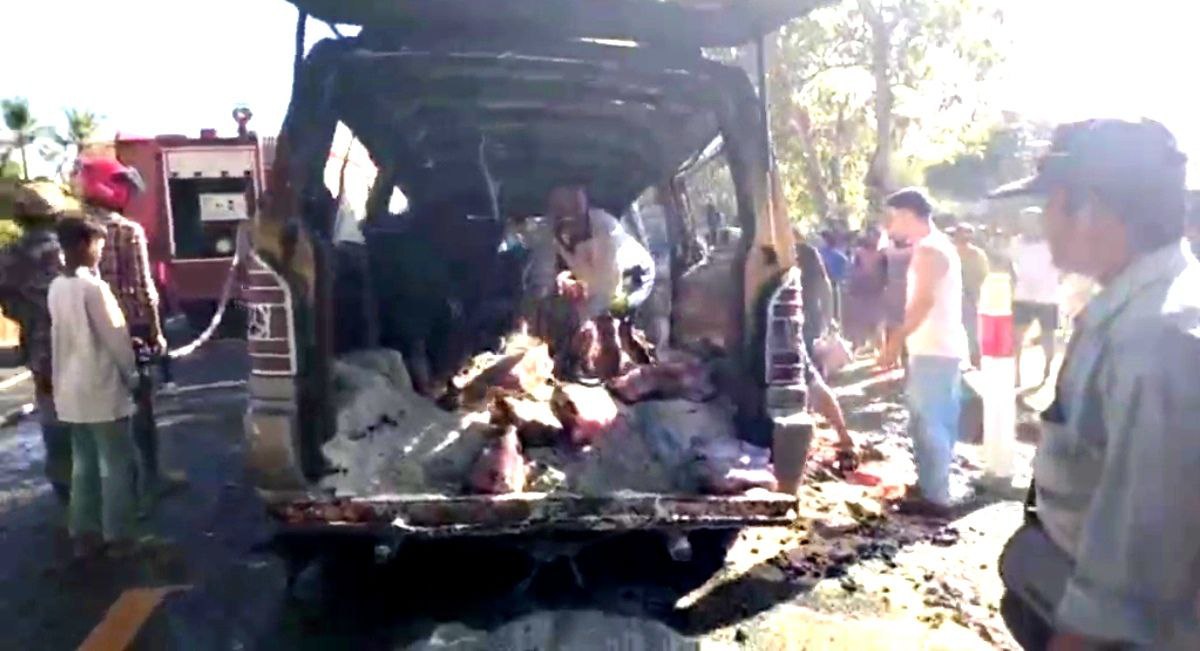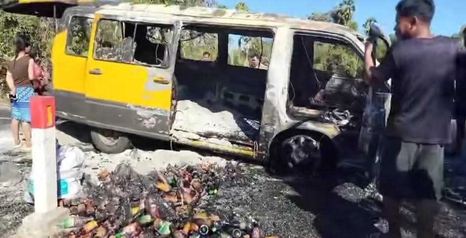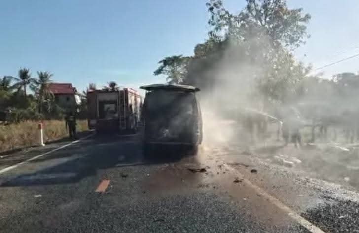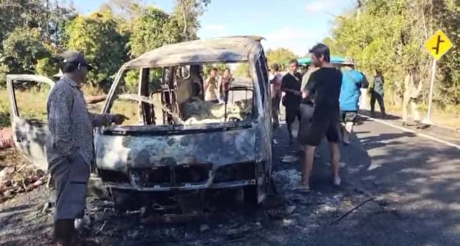 ខេត្តកំពង់ឆ្នាំង ៖ រថយន្តទួរីសមួយគ្រឿងត្រូវបានអគ្គីភ័យឆេះខ្ទេចទាំងស្រុងរួមទាំងស្បៀង ជាច្រើន ខណៈកំពុងតែបើកបរលើផ្លូវក្រាលកៅស៊ូមួយកន្លែង ក្នុងភូមិសិរី ឃុខុនរ៉ង ស្រុកបរិបូណ៌ បង្កការភ្ញាក់ផ្អើលកើតឡើងនៅវេលាម៉ោង ៨និង ៣០ នាទីព្រឹក ថ្ងៃទី ២២ ខែធ្នូឆ្នាំ ២០២៥ ។