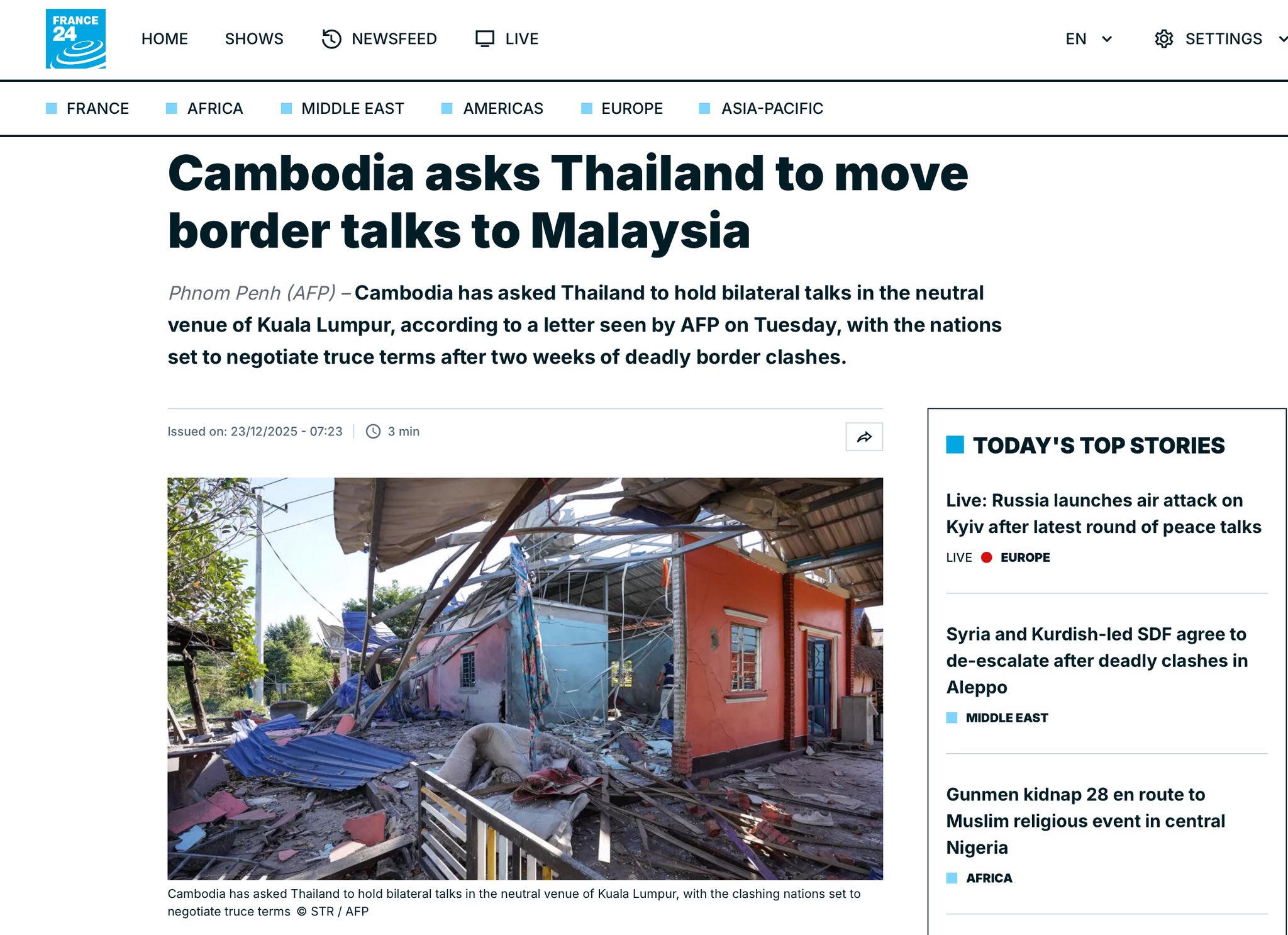 រដ្ឋមន្ត្រីក្រសួងព័ត៌មាន ៖ ថ្ងៃទី១៧ នៃការឈ្លានពានរបស់ថៃ លើទឹកដីកម្ពុជា សារព័ត៌មានអន្តរជាតិ នៅតែផ្តោតលើបញ្ហានេះ