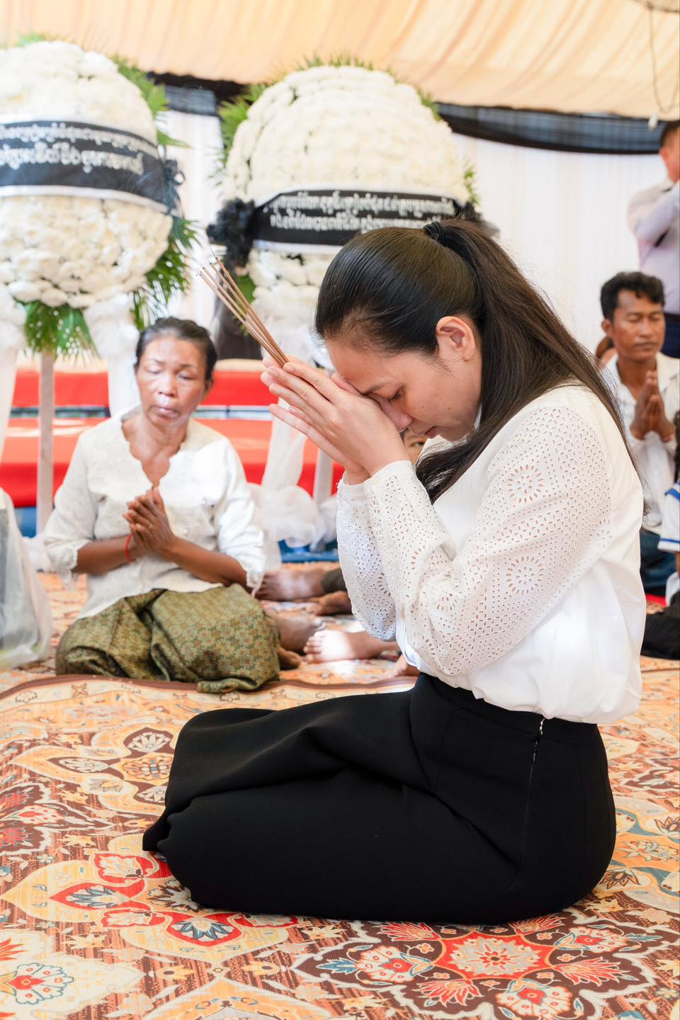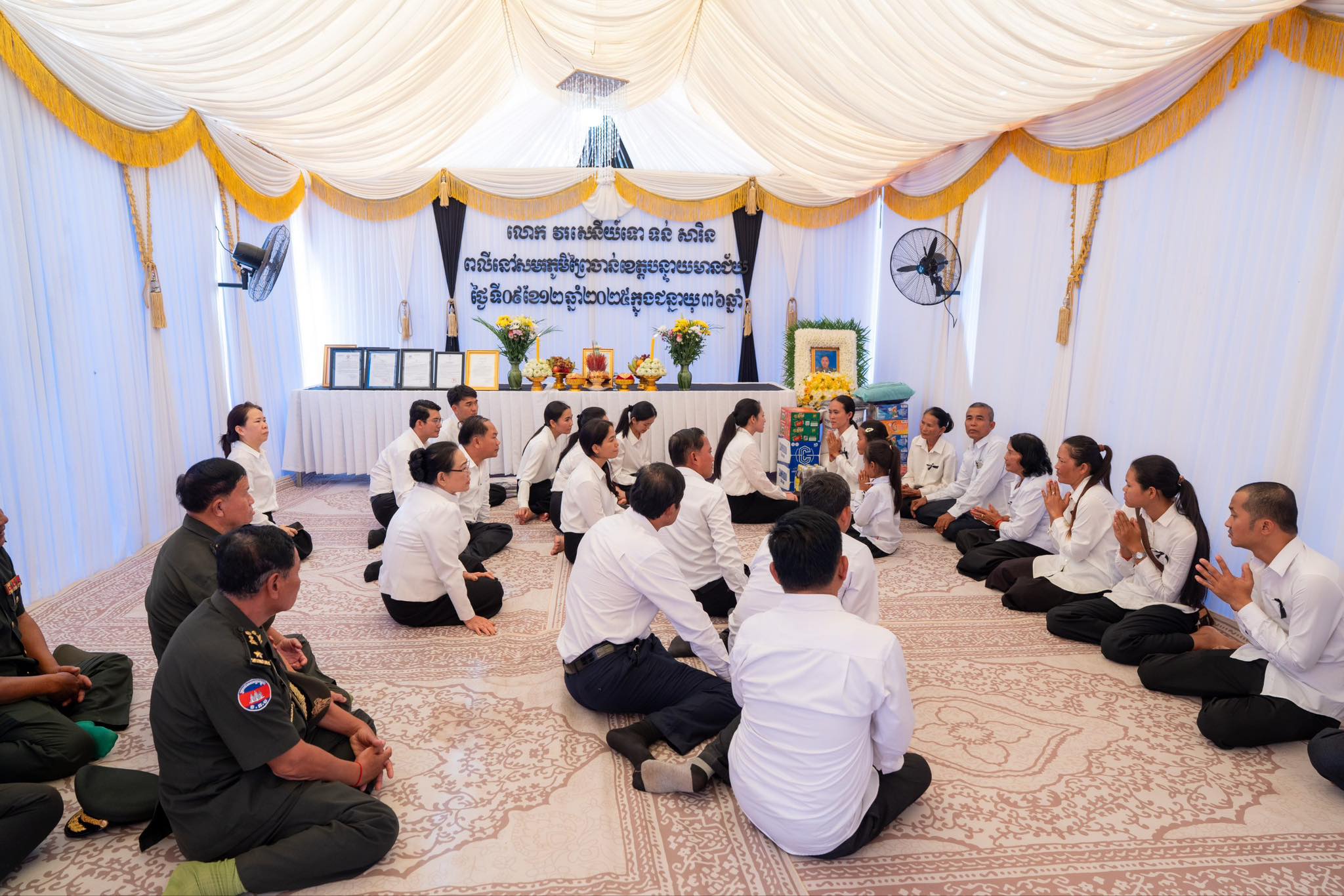ក្នុងទឹកចិត្តសោកសៅជាពន់ពេក លោកជំទាវបណ្ឌិត បានអញ្ជើញចូលរួមគោរពវិញ្ញាណក្ខន្ធវីរកងទ័ពដោយផ្ទាល់នៅគេហដ្ឋានរបស់សព ដែលកំពុងធ្វើបុណ្យតាមប្រពៃណីនៅក្នុងទឹកដីខេត្តតាកែវ ។