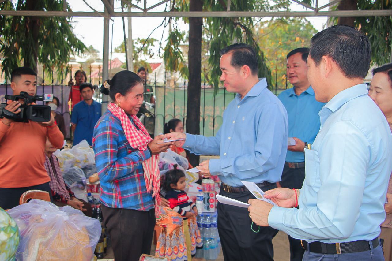ខេត្តកំពង់ចាម ៖ «ដោយសារតែសង្គ្រាមឈ្លានពានពីសំណាក់ទ័ពសៀមបាញ់ផ្លោងទាំងកាំភ្លើងធំ និងគ្រាប់ទម្លាក់ពីលើយន្តហោះចម្បាំងធ្វើឲ្យជនភៀស សឹកនិងគ្រួសារវីរយុទ្ធជនមកកាន់ខេត្តកំពង់ចាមកើនដ៏ជាង៦០០០គ្រួសារហើយ ។ នេះជាប្រសាសន៍លើកឡើងពីសំណាក់ឯកឧត្តម អ៊ុន ចាន់ដា អភិបាលខេត្តក្នុងឱកាសផ្ដល់ស្បៀងជូនបងប្អូនជនភៀសសឹក និងគ្រួសារវីរយុទ្ធជនជួរមុខចំនួន៦៤គ្រួសារ ធ្វើឡើងនាព្រឹកថ្ងៃទី២៥ ធ្នូ ឆ្នាំ២០២៥ នៅបរិវេណសាលាក្រុងកំពង់ចាម ។
