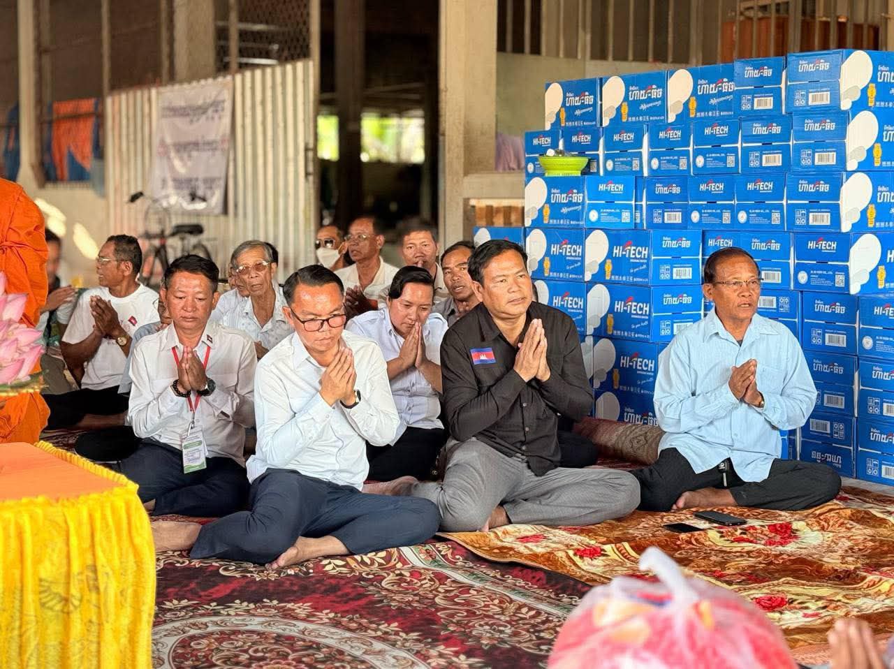 សម្ដេចពិន សែម នាំយកគ្រឿងឧបភោគបរិភោគ និងសម្ភារប្រើប្រាស់ ទៅចែកជូនជនភៀសសឹកនៅវត្តចំនួន៣