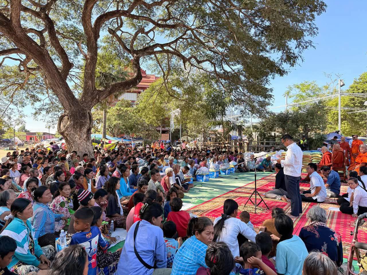 ខេត្តសៀមរាប ៖ ថ្ងៃទី២៥ ខែធ្នូ ឆ្នាំ២០២៥ សម្ដេចព្រះព្រហ្មរតនៈមុនី ពិន សែម សិរីសុវណ្ណោ ព្រះប្រធានថេរសភាព្រះពុទ្ធសាសនា នៃព្រះរាជណាចក្រកម្ពុជា សម្ដេចព្រះចៅ អធិ ការវត្តរាជបូណ៌ក្រុងសៀមរាប ព្រះតេជ គុណ រឿន បូរគង់ នៅប្រទេសអូស្ត្រាលី បាននាំយកអំណោយចែកជូនដល់មណ្ឌលភៀសសឹក ៣ទីតាំងមណ្ឌលសុវត្ថិភាពក្នុងស្រុកក្រឡាញ់ ខេត្តសៀមរាប រួមមានទីតាំងទី១វត្តបុទុម្មរតនញ្ញាណហៅ(វត្តស្រណាល)ឃុំស្រណាល ទី តាំងទី២ វត្តពោធិ៍ក្រឡាញ់ ឃុំក្រឡាញ់ និងទីតាំងទី៣ វត្តធម្មរង្សីសំពៅលូន ឃុំក្រឡាញ់។
