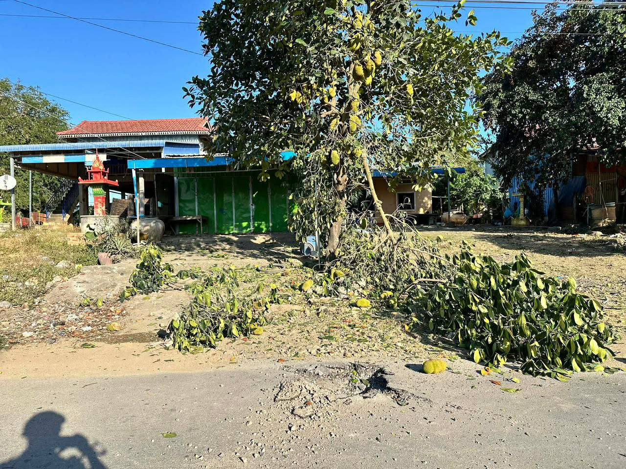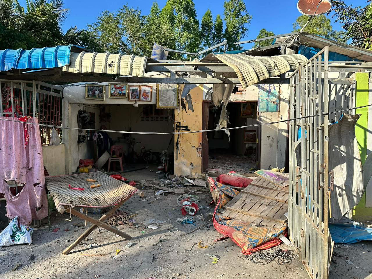 មន្ត្រីព្រំដែនបានឲ្យដឹងថា ពួកទាហានថៃបានប្រើប្រាស់កាំភ្លើងធំធុន១០៥មម នេះបាញ់ផ្តក់ចូលក្នុងភូមិឋាន បណ្ដាលឲ្យខូចខាតអស់០១ខ្នង រីឯ០១ខ្នងទៀតឆេះខ្ទេចតែម្ដងខណៈម្ចាស់ផ្ទះរងគ្រោះ រួមជាមួយអ្នកភូមិរាប់ពាន់គ្រួសារទៀត កំពុងភៀសសឹកចេញពីផ្ទះសម្បែងឡើងស្ងាត់ភូមិ ដើម្បីទៅរកតំបន់មានសុវត្ថិភាព ខណៈដែលពួកទាហានឈ្លានពានរបស់ថៃបាញ់ផ្លោងឆ្លងព្រំរំដែនចូលភូមិឋានខាងកម្ពុជារាល់ថ្ងៃគ្មានបន្ធូរដៃឡើយ ។