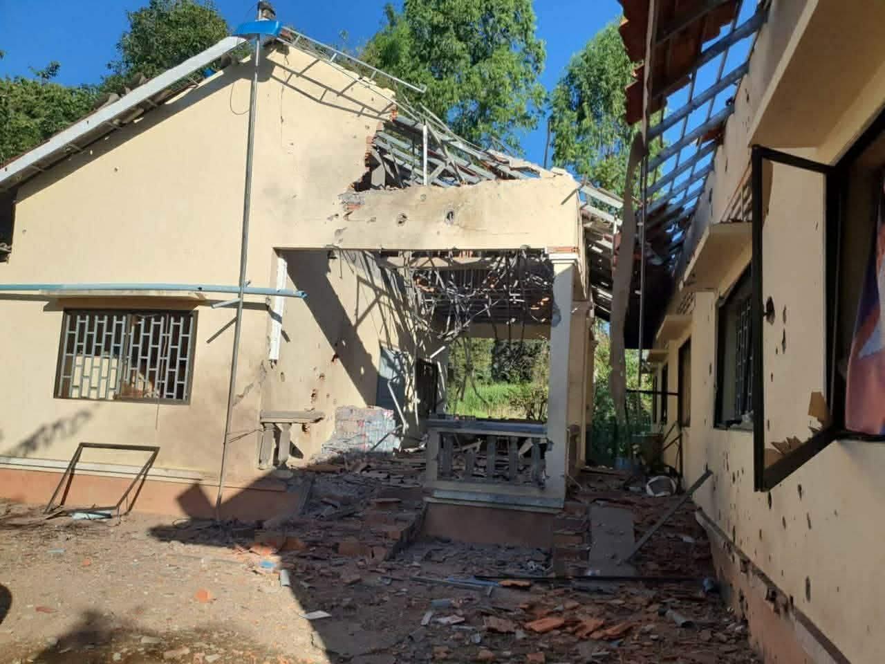 នៅក្នុងរបាយការណ៍៖ ការបាញ់ផ្លោងចូលភូមិឋានជនស៊ីវិលយ៉ាងព្រៃផ្សៃគ្មានប្រណីដៃ ត្រឹមរយៈពេល១កន្លះនេះ ធ្វើឲ្យខូចខាតផ្ទះសម្បែងរបស់ប្រជាពលរដ្ឋអស់ចំនួន០៣ខ្នងថែមទៀត ខណៈម្ចាស់ផ្ទះកំពុងរត់ភៀសសឹកស្ងាត់អស់ពីផ្ទះ ។ ខេត្តបាត់ដំបងមានស្រុកចំនួន០៤ ដែលមានព្រំប្រទល់ជាប់នឹងប្រទេសជាតិ ដែលមានមហិច្ឆិតាឈ្លានពានទឹកដីនៃថៃ ។ ក្នុងនោះ មាន៖ ស្រុកសំឡូត ស្រុកកំរៀង ស្រុកភ្នំព្រឹក និងស្រុកសំពៅលូន។ ប៉ុន្តែក្នុងពេលកម្ពុជា កំពុងរងការបាញ់ប្រហារដោយអាវុធគ្រប់ធុនធ្ងន់ រាប់ទាំងដ្រូន និង យន្តហោះចម្បាំងច្រើនប្រភេទផងនាពេលនេះ ពីសំណាក់ពួកទាហានឈ្លានពានថៃ គឺមានតែស្រុកចំនួន០២ប៉ុណ្ណោះ ដែលត្រូវពួកទាហានឈ្លានពានធ្វើទុក្ខបុកម្នេញខ្លាំងជាងគេ គឺ «ស្រុកភ្នំព្រឹក និងស្រុកសំពៅលូន» ។