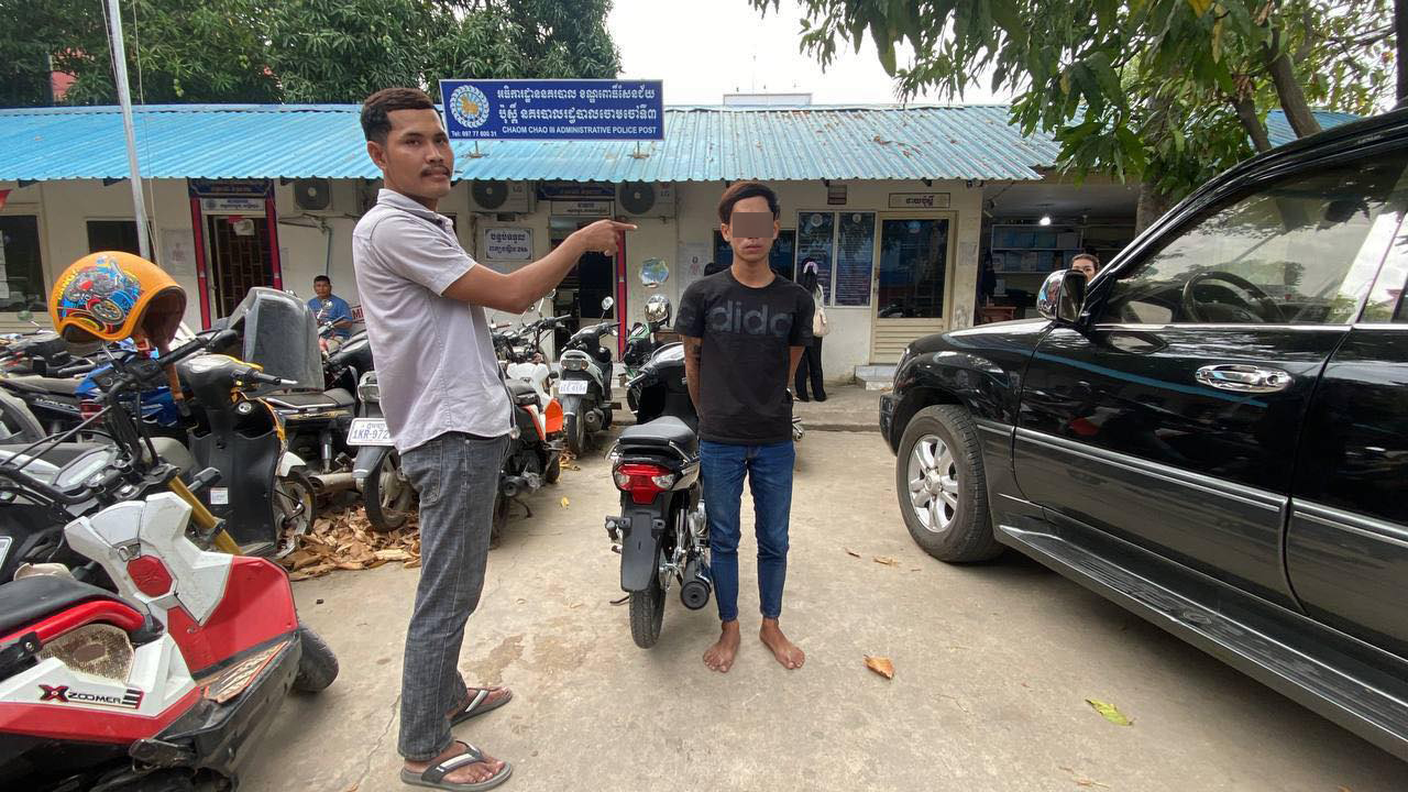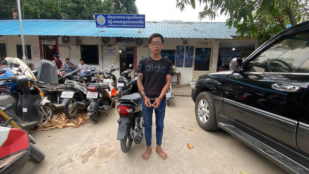 ពេលនោះទើបដឹងថា ម៉ូតូនោះត្រូវមិត្តភក្តិជាអ្នកលួច បន្ទាប់មកនៅវេលាម៉ោង៨និង៣០នាទីយប់ថ្ងៃដដែល កម្លាំងនគរបាលឈានដល់ការចាប់ឃាត់ខ្លួនជនសង្ស័យ និងដកហូតម៉ូតូដែលលួចបាននោះនៅតាមផ្លូវបេតុង មុខបន្ទប់ជួលស្ថិតនៅភូមិព្រៃព្រីងខាងត្បូង២ សង្កាត់ចោមចៅទី៣ ខណ្ឌពោធិ៍សែនជ័យ បន្ទាប់មកទៀតបាននាំយកជននេះទៅកាន់ប៉ុស្តិ៍នគរបាលរដ្ឋបាលចោមចៅទី៣ ដើម្បីធ្វើការសាកសួរ និងកសាងសំណុំរឿងចាត់ការតាមច្បាប់ ៕