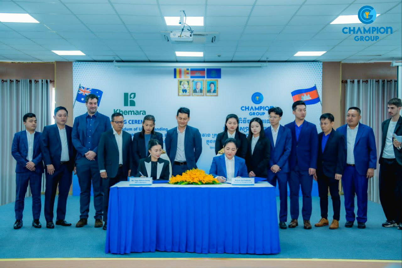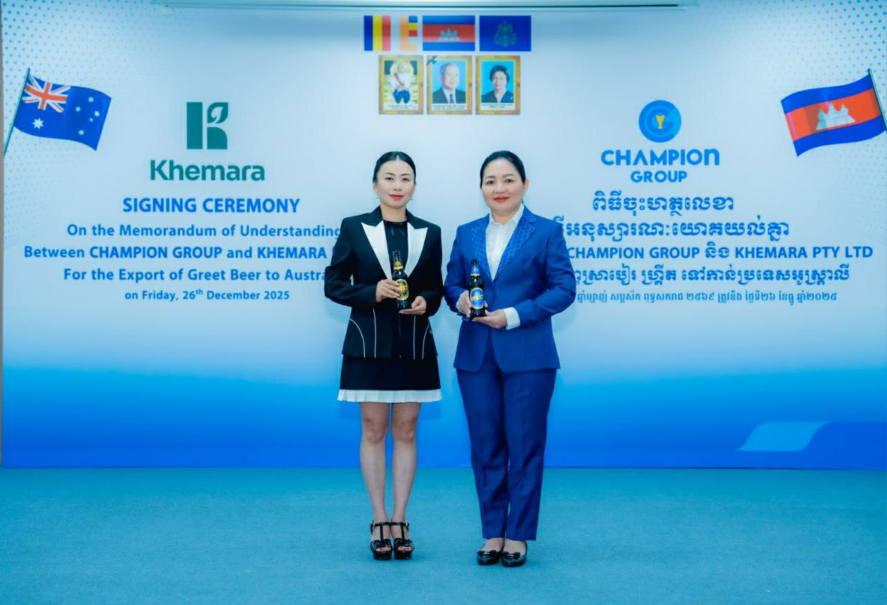 រាជធានីភ្នំពេញ៖ ក្រុមហ៊ុន ឆេមពានគ្រុប បានចុះហត្ថលេខាលើអនុស្សាណៈយោគយល់គ្នាជាមួយ ក្រុមហ៊ុន ខេមរា (Khemera) ក្នុងការនាំចេញស្រាបៀហ្គ្រីតទៅកាន់ប្រទេសអូស្ត្រាលី នៅក្នុងពិធីការចុះហត្ថលេខារវាងក្រុមហ៊ុនទាំងពីរ ដែលបានរៀបចំកាលនាព្រឹកថ្ងៃសុក្រ ៧កើត ខែបុស្ស ឆ្នាំម្សាញ់ សប្តស័ក ពុទ្ធសករាជ ២៥៦៩ ត្រូវនឹងថ្ងៃទី២៦ ខែធ្នូ ឆ្នាំ២០២៥។ កិច្ចសហប្រតិបត្តិការនេះគឺជាជំហានថ្មីមួយ ឆ្ពោះទៅកាន់ទីផ្សារអន្តរជាតិ ដោយមោទនភាព របស់ក្រុមហ៊ុនឆេមពានគ្រុប ដែលជាក្រុមហ៊ុនកូនខ្មែរ ១០០%។