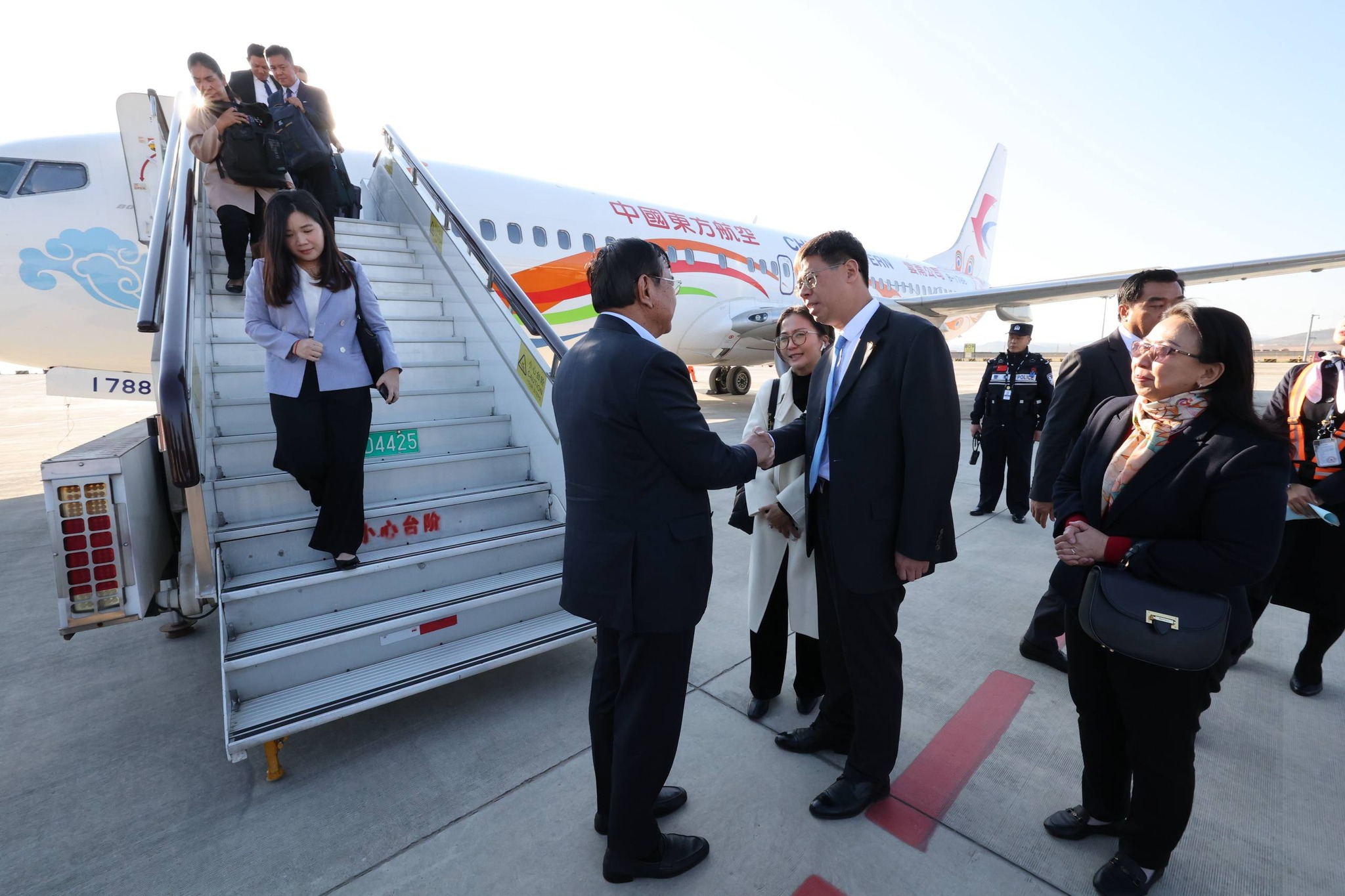 រាជធានីភ្នំពេញ ៖ ឯកឧត្តម ប្រាក់ សុខុន ឧបនាយករដ្ឋមន្ត្រី រដ្ឋមន្ត្រីការបរទេស និងសហប្រតិបត្តិការអន្តរជាតិ នៃព្រះរាជាណាចក្រកម្ពុជា ដឹកនាំគណៈប្រតិភូកម្ពុជា អញ្ជើញដល់អាកាសយានដ្ឋានអន្តរជាតិខេត្តយូណាន នាព្រឹកថ្ងៃទី២៨ ខែធ្នូ ឆ្នាំ២០២៥នេះ ដើម្បីចូលរួមកិច្ចប្រជុំត្រីភាគីរវាងកម្ពុជា ថៃ និងចិន ក្នុងគោលបំណងពិភាក្សាអំពីការវិវត្តថ្មីៗ នៃស្ថានភាពរវាងកម្ពុជា និងថៃ ដែលនឹងប្រព្រឹត្តទៅថ្ងៃទី២៨-២៩ ខែធ្នូ ឆ្នាំ២០២៥ នៅខេត្តយូណាន នៃសាធារណរដ្ឋប្រជាមានិតចិន តបតាមការអញ្ជើញរបស់ឯកឧត្តម វ៉ាង យី រដ្ឋមន្ត្រី ការបរទេសចិន ៕