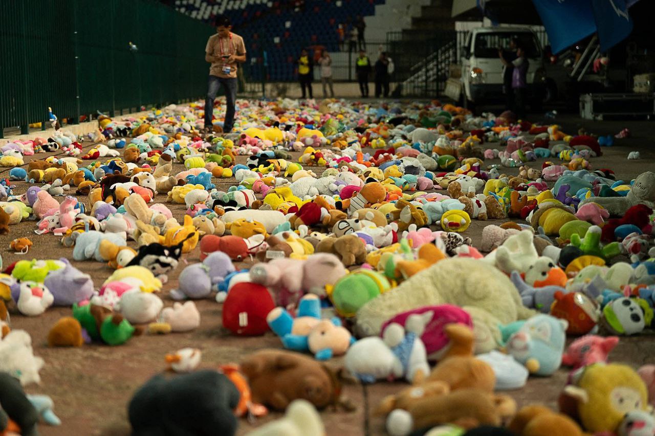 ជាតិអូឡាំពិកកាលពីថ្ងៃទី២៧ ខែធ្នូ អ្នកគាំទ្របានបរិច្ចាគតុក្កតាខ្ទង់មុឺនដល់កុមារដែលកំពុង