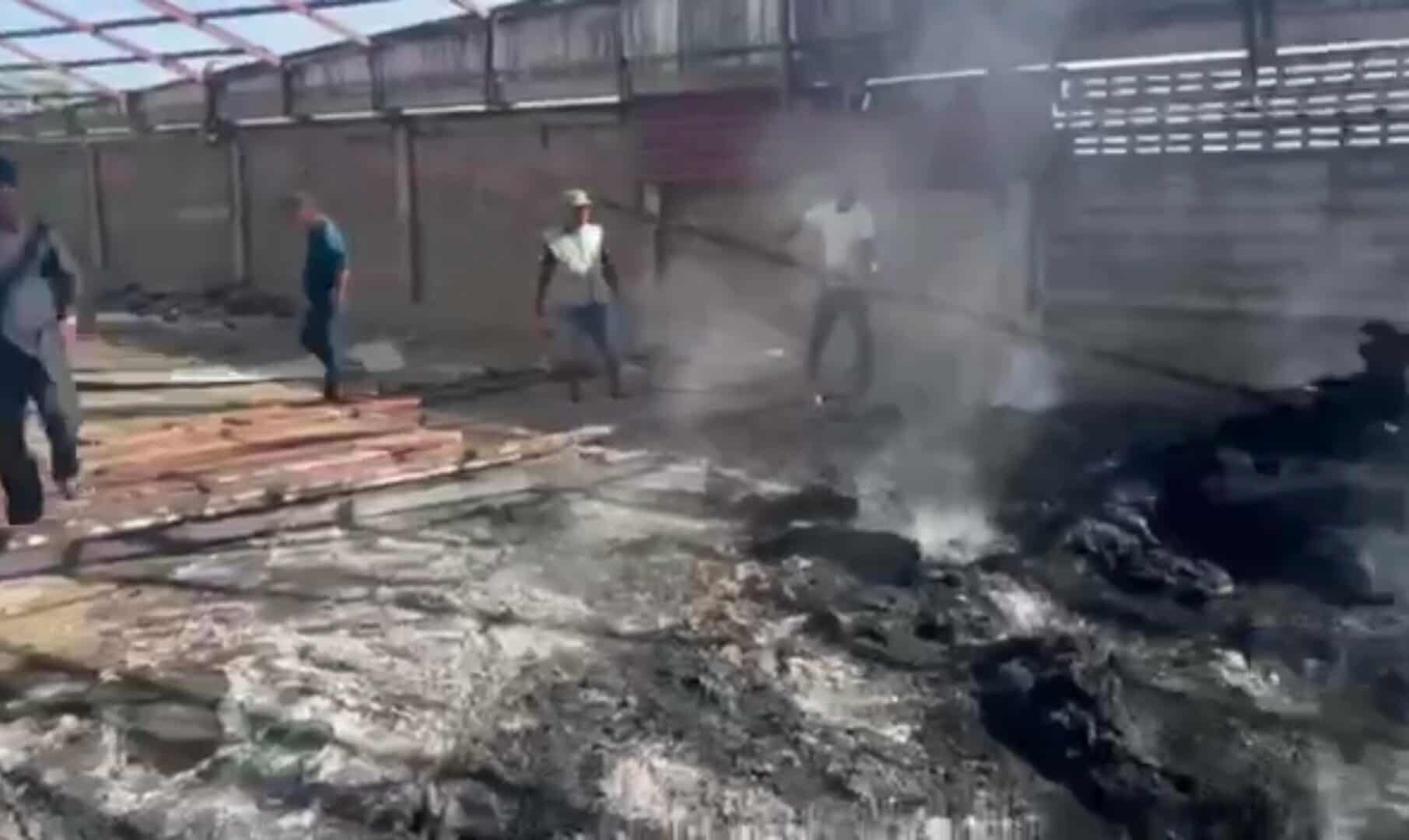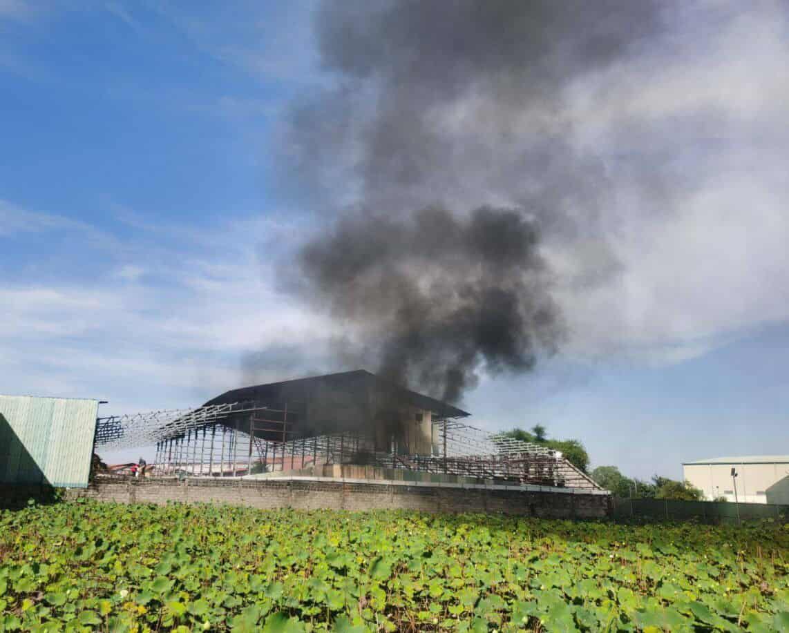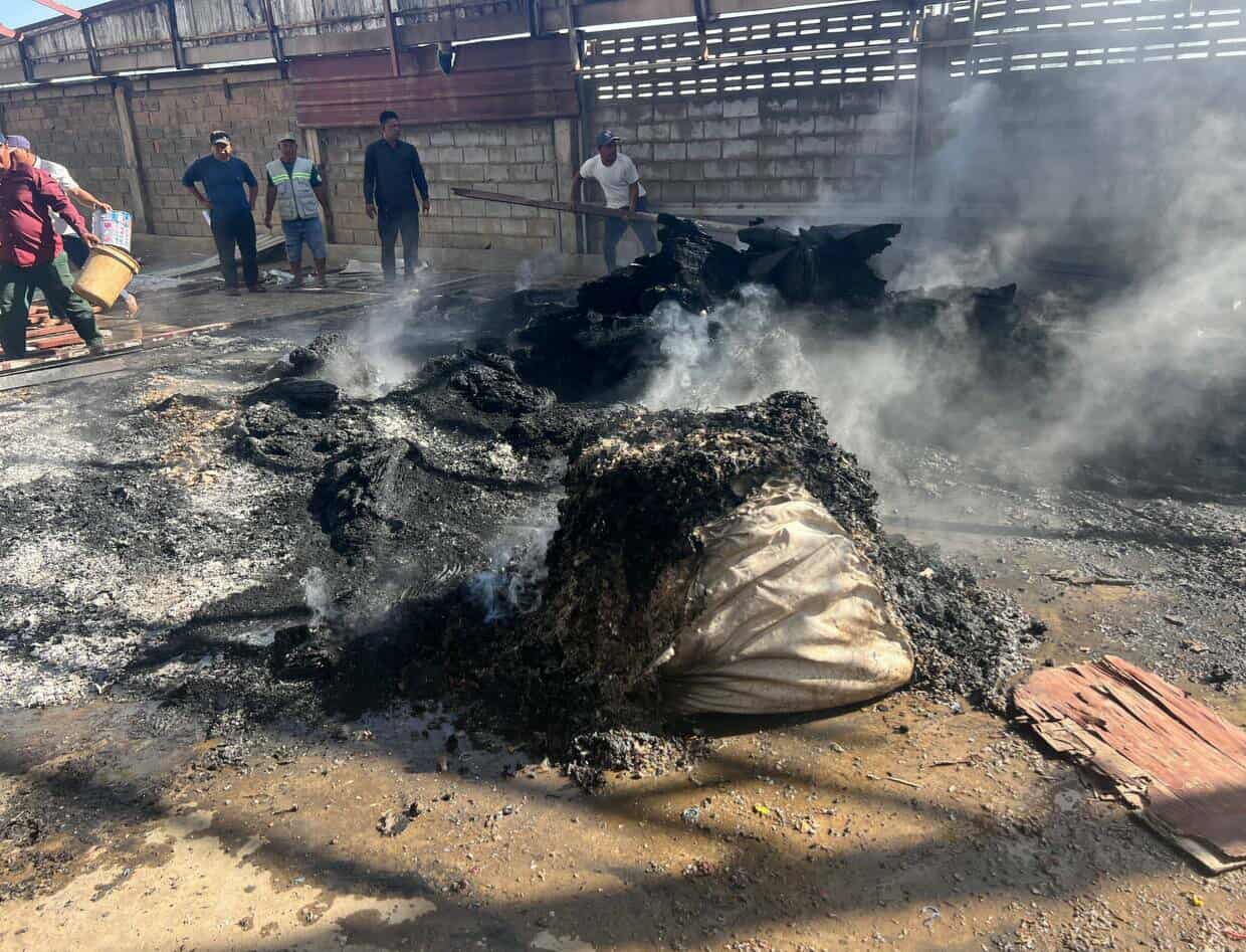 រាជធានីភ្នំពេញ ៖ ឃ្លាំងមួយកន្លែងត្រូវបានអគ្គិភ័យឆាបឆេះយ៉ាងសន្ធោសន្ធៅ ខណៈពេលតែម្ចាស់រុះរើជួសជុលផ្សារផ្សារដែកហើយធ្លាក់កម្ទេច ត្រូវក្រណាត់ឆេះរាលដាល។