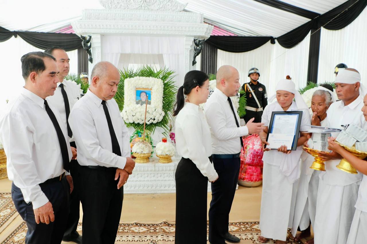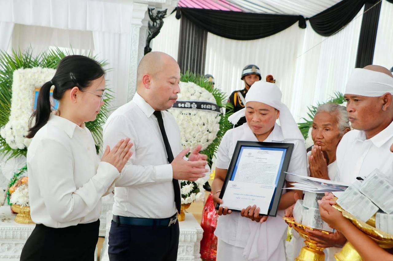 នៅក្នុងសមានទុក្ខដ៏ក្រៀមក្រំនោះ សម្តេចកិត្តិសង្គហបណ្ឌិត ក៏បាននាំនូវសាររំលែកទុក្ខពីសំណាក់សម្តេចអគ្គមហាសេនាបតីតេជោ ហ៊ុន សែន ប្រធានព្រឹទ្ធសភា ជូនដល់ក្រុមគ្រួសារសព និងបានបង្ហាញនូវការសោកស្តាយនូវការបាត់បង់នូវធនធានមនុស្សមួយរូបផ្នែកដោះមីននាពេលនេះ និងបាននាំយកថវិការបស់ សម្តេចតេជោ និងសម្តេចកិត្តិព្រឹទ្ធបណ្ឌិត ប៊ុន រ៉ានី ហ៊ុនសែន ចូលបុណ្យសពផងដែរ។