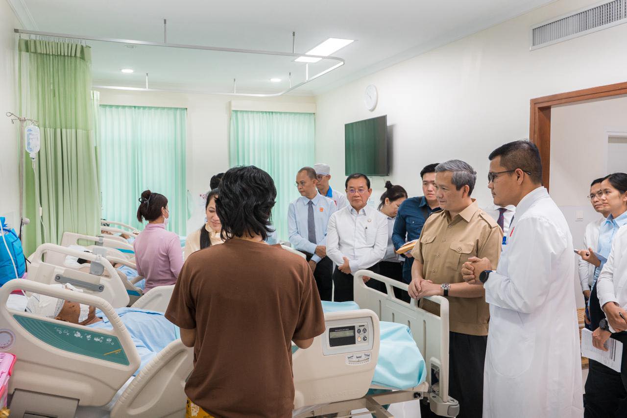 រាជធានីភ្នំពេញ ៖ នៅថ្ងៃទី៣០ ខែធ្នូ ឆ្នាំ២០២៥នេះ សម្តេចធិបតី ហ៊ុន ម៉ាណែត នាយករដ្ឋមន្ដ្រីនៃកម្ពុជា រួមជាមួយលោកជំទាវបណ្ឌិត ពេជ ចន្ទមុនី ឧត្តមភរិយា បានអញ្ជើញជួបសួរសុខទុក្ខបងប្អូន វីរកងទ័ព និងវីរនគរបាល ដែលរងរបួសក្នុងសមរភូមិ និងបានបញ្ជូនមកសម្រាកព្យាបាលបន្តនៅតាមមន្ទីរពេទ្យក្នុងរាជធានីភ្នំពេញ ។