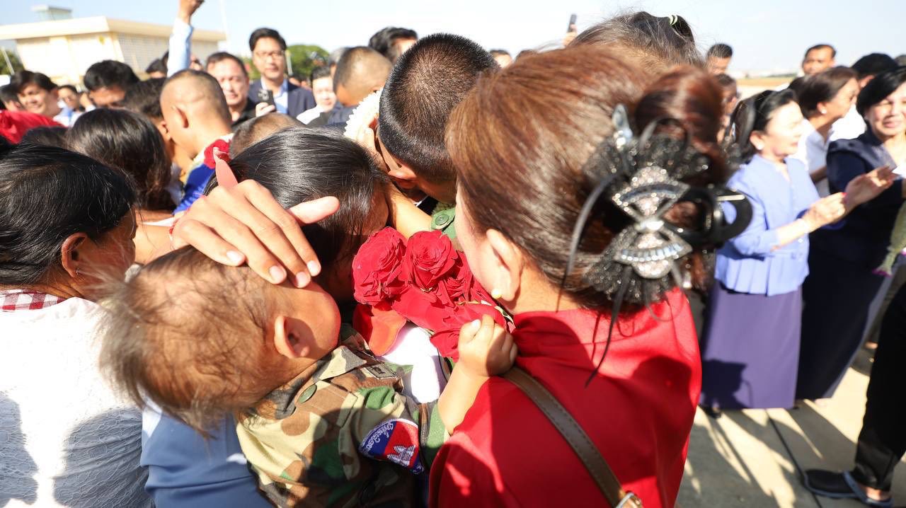រាជធានីភ្នំពេញ ៖ ក្រោយពីការឃ្លាតឆ្ងាយពីមាតុភូមិ និងក្រុមគ្រួសារអស់រយៈពេល ១៥៥ថ្ងៃ វីរយោធិនទាំង១៨រូបបានវិលមកដល់មាតុភូមិ និងជួបជុំក្រុមគ្រួសារវិញហើយ នារសៀលថ្ងៃទី៣១ ខែធ្នូ ឆ្នាំ២០២៥នេះ ។ នេះបើយោងតាមផេកទីភ្នាក់ងារសារព័ត៌មានកម្ពុជាបានប្រកាសនារសៀលថ្ងៃទី៣១ ខែធ្នូនេះ ។