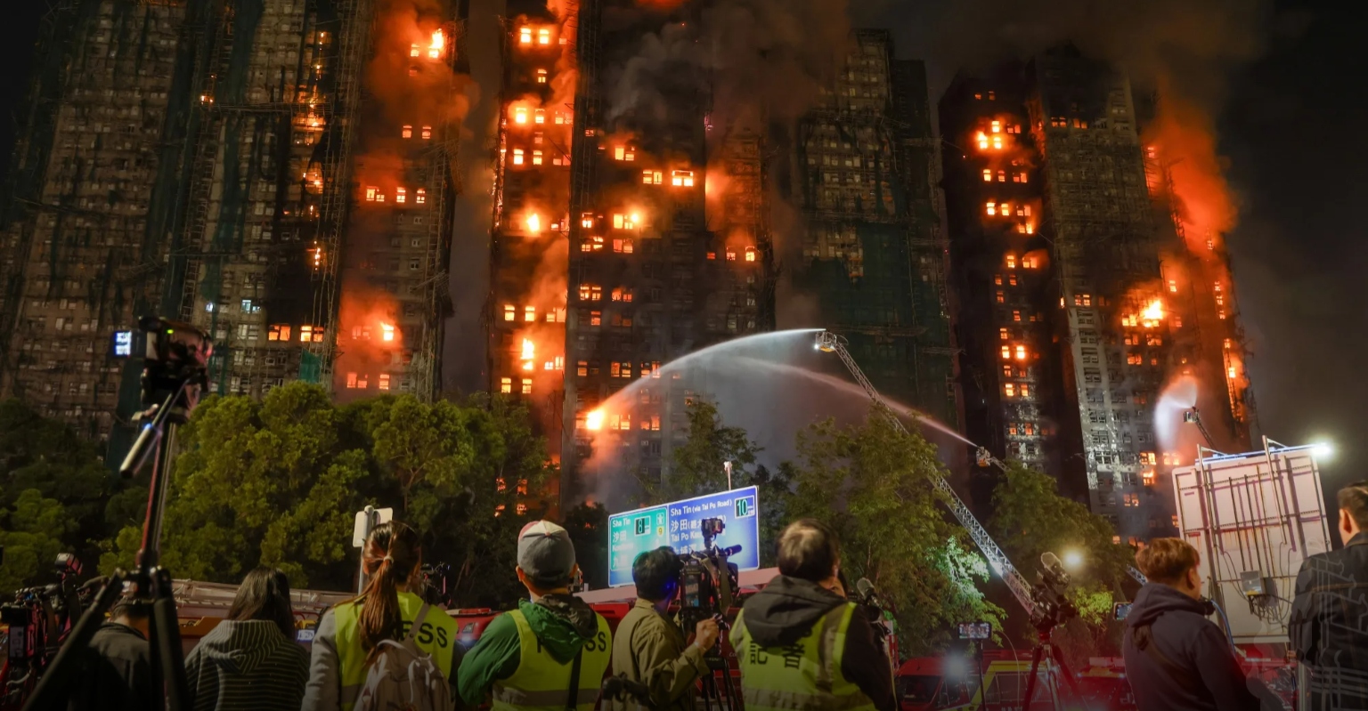 ករណីឆេះអគារនៅសង្កាត់ថៃប៉ូ (Tai Po) នោះជាអគ្គិភ័យដែលផ្ដាច់ផ្ដិលជីវិតមនុស្សច្រើនមិនធ្លាប់មានចាប់តាំងពីឆ្នាំ១៩៨៤។ មុនពេលកើតហេតុនោះ អគារស្ថិតនៅក្នុងដំណាក់កាលជួសជុលកែលម្អឡើងវិញ។ នៅម្ដុំអគារទាំងនោះមានសុទ្ធតែរន្ទាធ្វើអំពីឫស្សី និងហ៊ុមព័ទ្ធជុំវិញដោយសំណាញ់ពណ៌ខៀវ។ របស់ទាំង២នេះត្រូវគេសង្ស័យថាជាមូលហេតុដែលធ្វើឱ្យអគ្គិភ័យឆាបឆេះយ៉ាងលឿន។ នេះបើយោងតាមការផ្សាយរបស់អេភី (AP) និងប្រភពដទៃទៀត៕