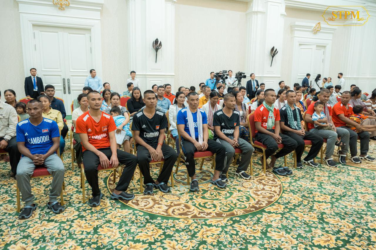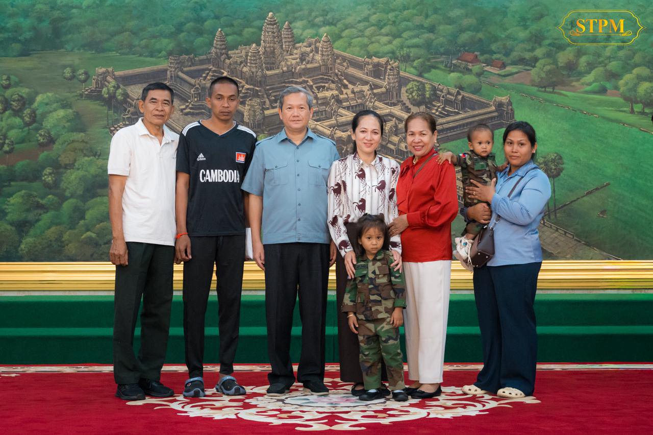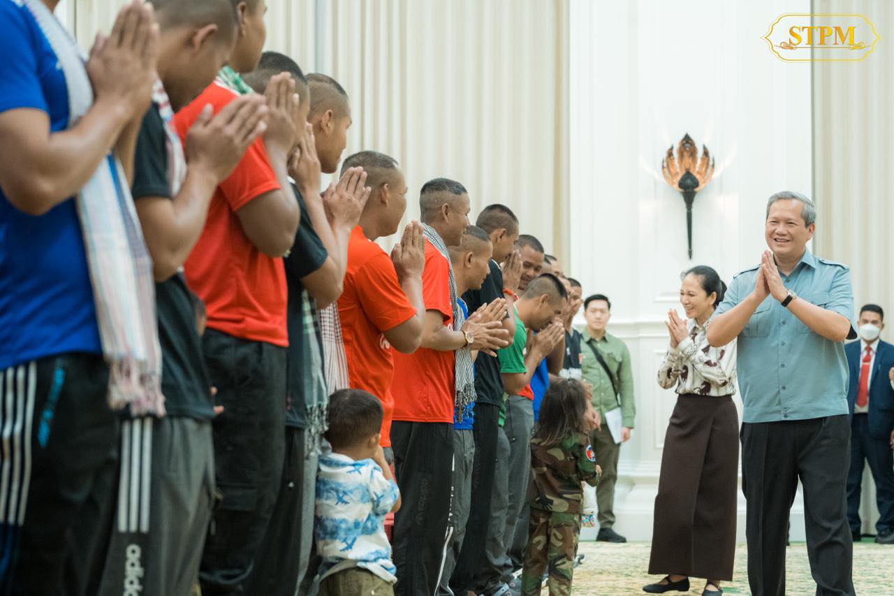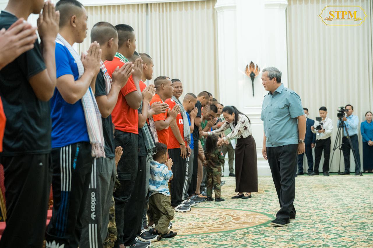 រាជធានីភ្នំពេញ ៖ នៅរសៀលថ្ងៃទី៣១ ខែធ្នូ ឆ្នាំ២០២៥នេះ សម្តេចធិបតី ហ៊ុន ម៉ាណែត នាយករដ្ឋមន្ត្រី នៃកម្ពុជា និងលោកជំទាវបណ្ឌិត ពេជ ចន្ទមុន្នី ហ៊ុន ម៉ាណែត ជួបសំណេះសំណាលជាមួយវីរយុទ្ធជនកម្ពុជា ទាំង១៨រូប ដែលទើបបានធ្វើមាតុភូមិនិវត្តមកមាតុប្រទេសវិញ ដោយសុខសុវត្ថិភាព ។
