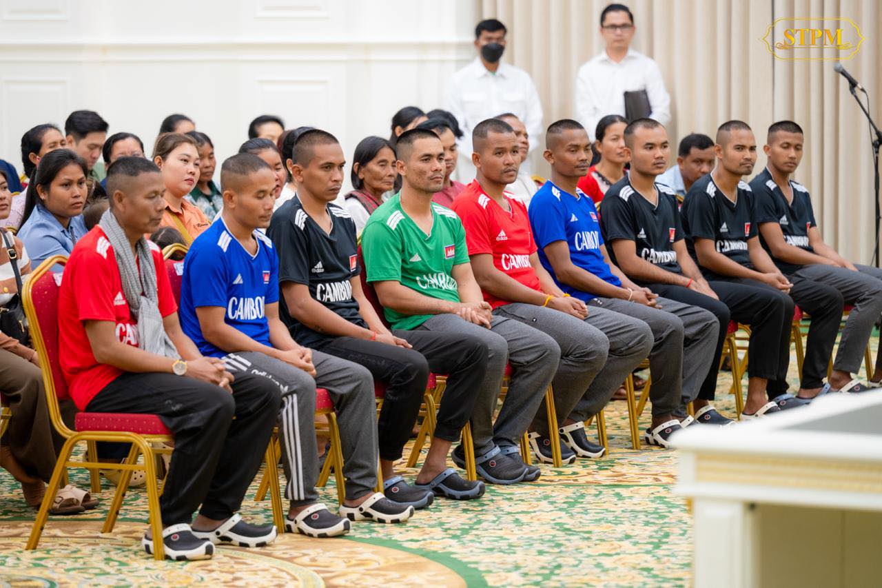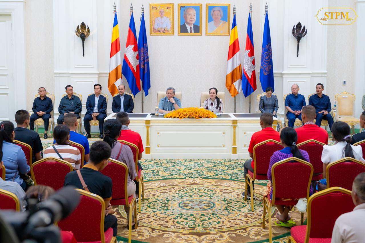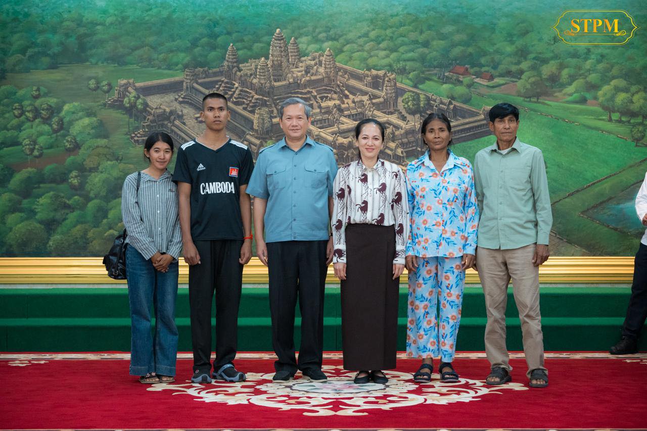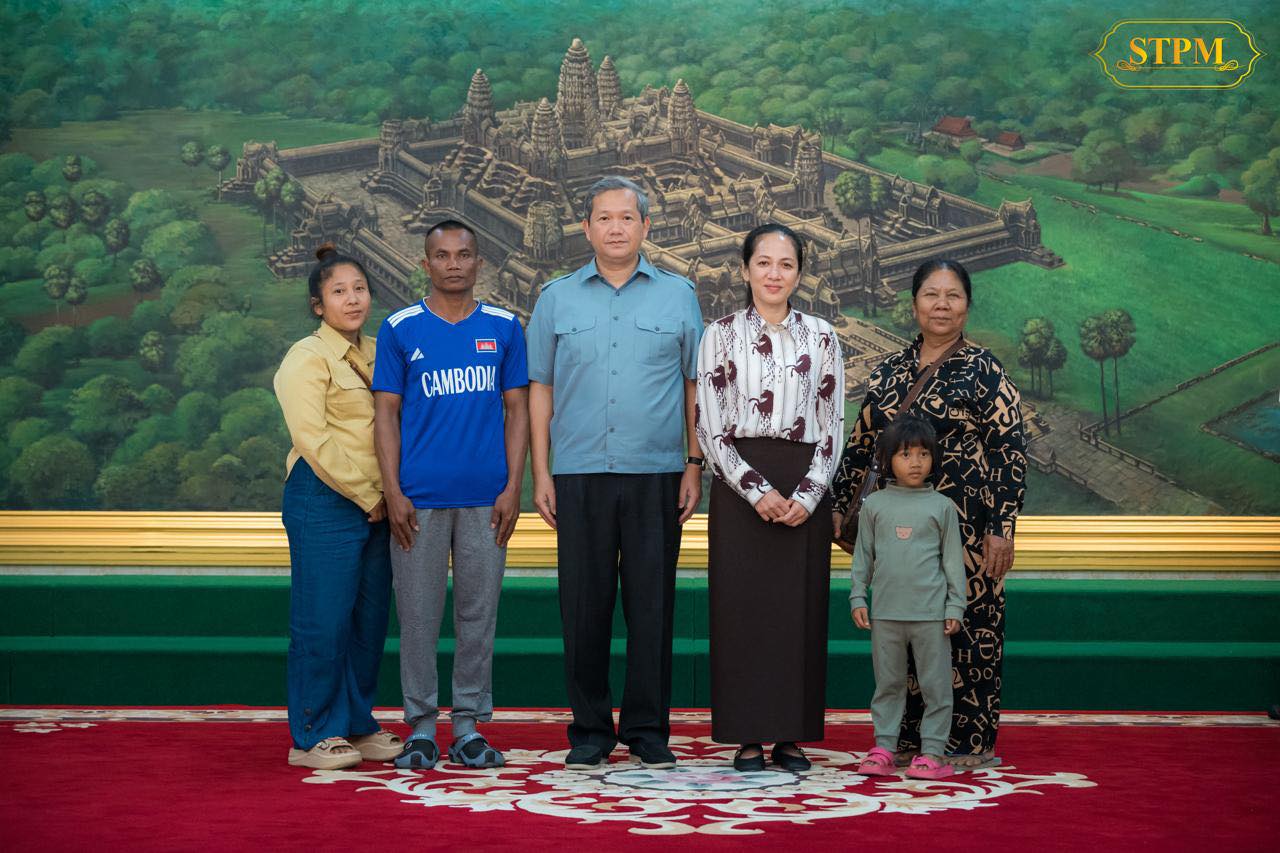 រាជធានីភ្នំពេញ ៖ នៅរសៀលថ្ងៃទី៣១ ខែធ្នូ ឆ្នាំ២០២៥នេះ សម្តេចធិបតី ហ៊ុន ម៉ាណែត នាយករដ្ឋមន្ត្រី នៃកម្ពុជា និងលោកជំទាវបណ្ឌិត ពេជ ចន្ទមុន្នី ហ៊ុន ម៉ាណែត ជួបសំណេះសំណាលជាមួយវីរយុទ្ធជនកម្ពុជា ទាំង១៨រូប ដែលទើបបានធ្វើមាតុភូមិនិវត្តមកមាតុប្រទេសវិញ ដោយសុខសុវត្ថិភាព ។