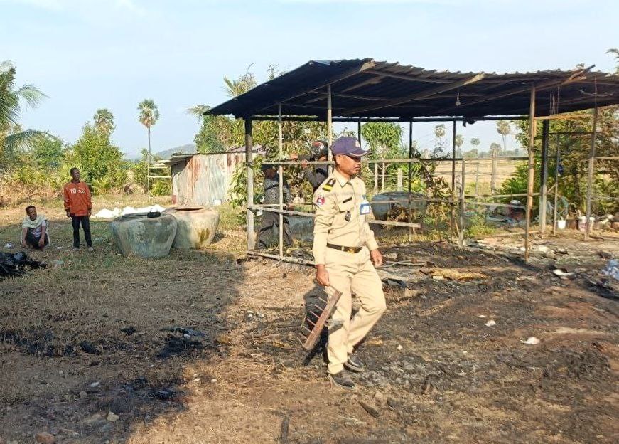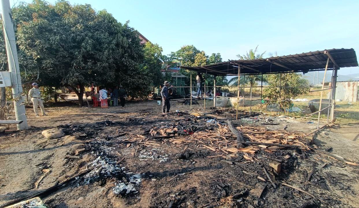 ខេត្តកំពង់ស្ពឺ៖ ផ្ទះតៀមមួយខ្នងត្រូវបានភ្លើងឆេះអស់គ្មានសល់ ខណៈដែលម្ចាស់មិននៅ ទៅច្រៀងភ្លេងប្រពៃណីក្នុងកម្មវិធីមង្គលការគេ ។