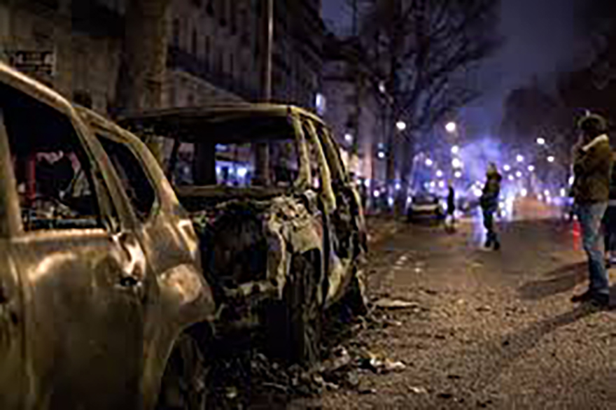 ប្រទេសបារាំង ៖ ដូចរាល់ឆ្នាំដែរ ក្នុងយប់ឆ្លងឆ្នាំ រថយន្តច្រើនគ្រឿងត្រូវបានដុតបំផ្លាញនៅបារាំង ។ ក្រសួងមហាផ្ទៃបារាំងចេញសេចក្ដីប្រកាសមួយពីតុល្យការនៃយប់ឆ្លងឆ្នាំ គឺរថយន្តដល់ជាង១០០០គ្រឿងរងការដុតបំផ្លាញ ហើយមនុស្សជាង៥០០នាក់បានត្រូវចាប់ខ្លួននៅបារាំងនាយប់ឆ្លងឆ្នាំ ។
