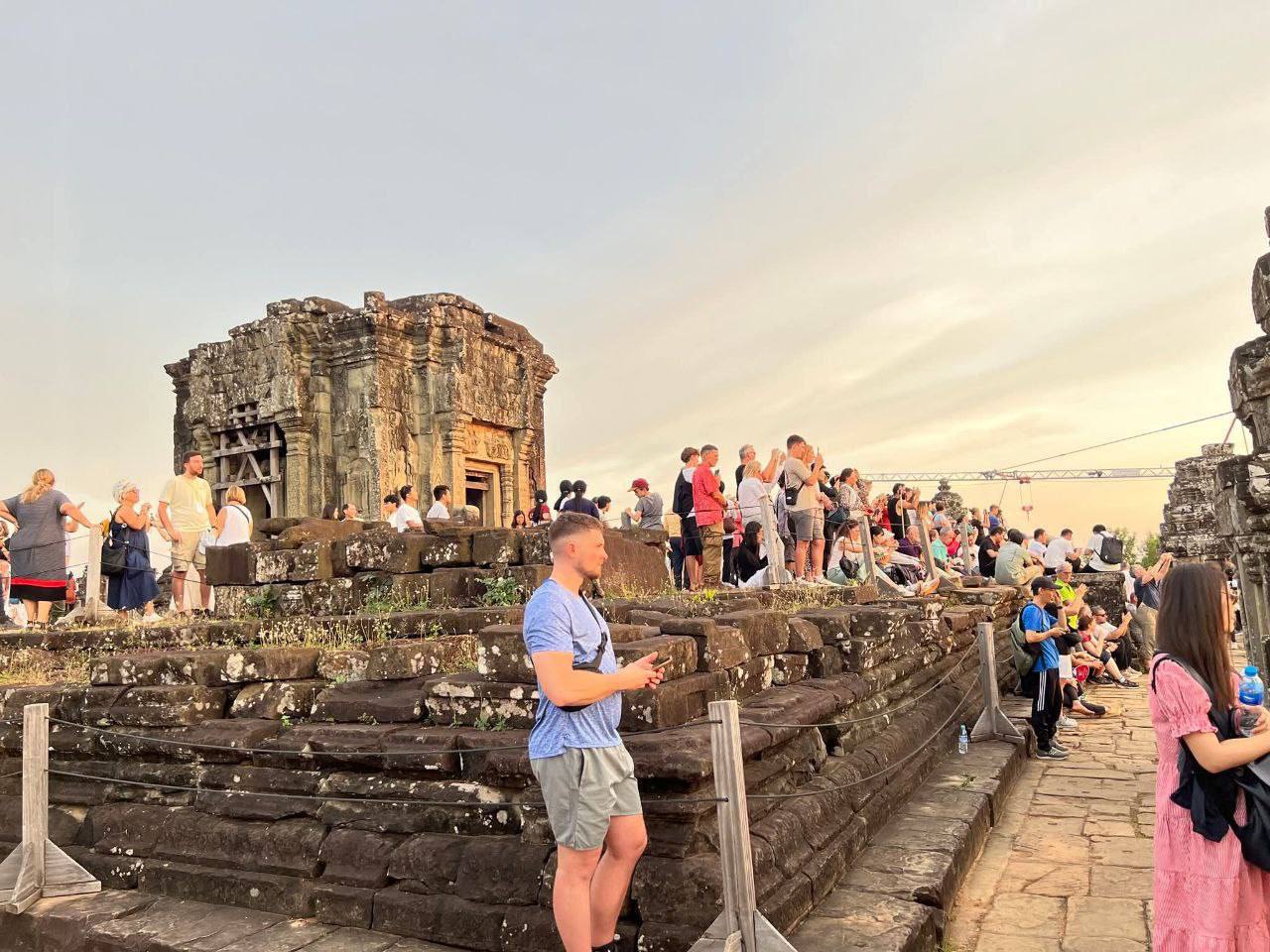 ខេត្តសៀមរាប ៖ ប្រាសាទភ្នំបាក់ខែង គឺជាទីតាំងដ៏ល្បីល្បាញបំផុតមួយក្នុងតំបន់អង្គរ ដែលភ្ញៀវទេសចរមិនដែលរំលងឡើយ ជាពិសេសសម្រាប់អ្នកដែលនិយមចូលចិត្តការថតរូបសិល្បៈធម្មជាតិ និងការគយគន់ទេសភាពពីលើទីខ្ពស់។