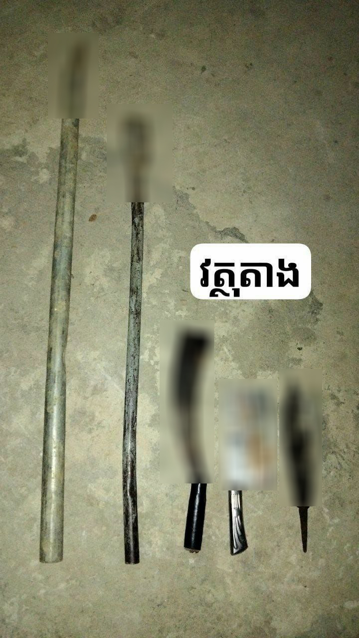 នគរបាលស្រុកសំរោងទងបានបញ្ជាក់ថា÷ ក្រោយឃាត់ខ្លួនយុវជនវាយបំផ្លិចបំផ្លាញសម្ភារ និងទ្រព្យសម្បត្តិ នគរបាលបានដកហូតវត្ថុតាងមាន ដែកទីបមូល០១ ចបជីក០១ កាំបិតផ្គាក់០១ កាំបិតប័ុងតោ០១ និងកាំបិតស្នៀត០១ផងដែរ ។