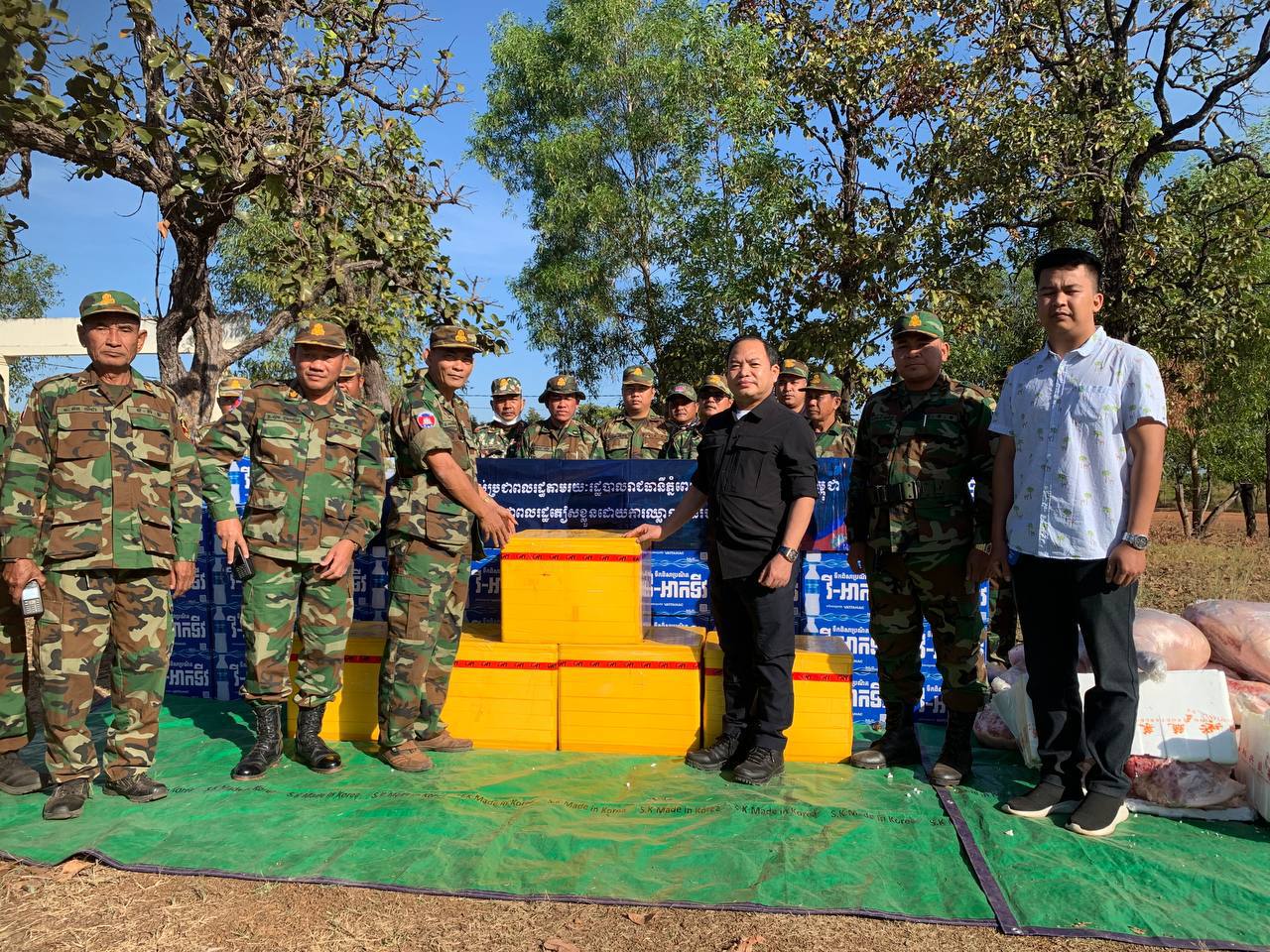 លោកបានសម្ដែងការត្រេកអរយ៉ាងខ្លាំងពីទឹកចិត្ដអាណិតស្រឡាញ់ របស់សម្ដេចមហាបវរធិបតី និងលោកជំទាវបណ្ឌិត ដែលបានផ្ដល់អំណោយជាសាច់គោស្រស់ចំនួន១០០០គីឡូក្រាម និងសាច់ជ្រួកចំនួន១៥០០គីឡូក្រាម និងកងពលធំអន្តរាគមន៌លេខ៣ទទួលបានសាច់គោស្រស់ចំនួន១០០០គីឡូក្រាម, សាច់ជ្រូកចំនួន ១៥០០គីឡូក្រាម និងគ្រឿងឧបភោគ បរិភោគ ជាច្រើនមុខទៀត ។