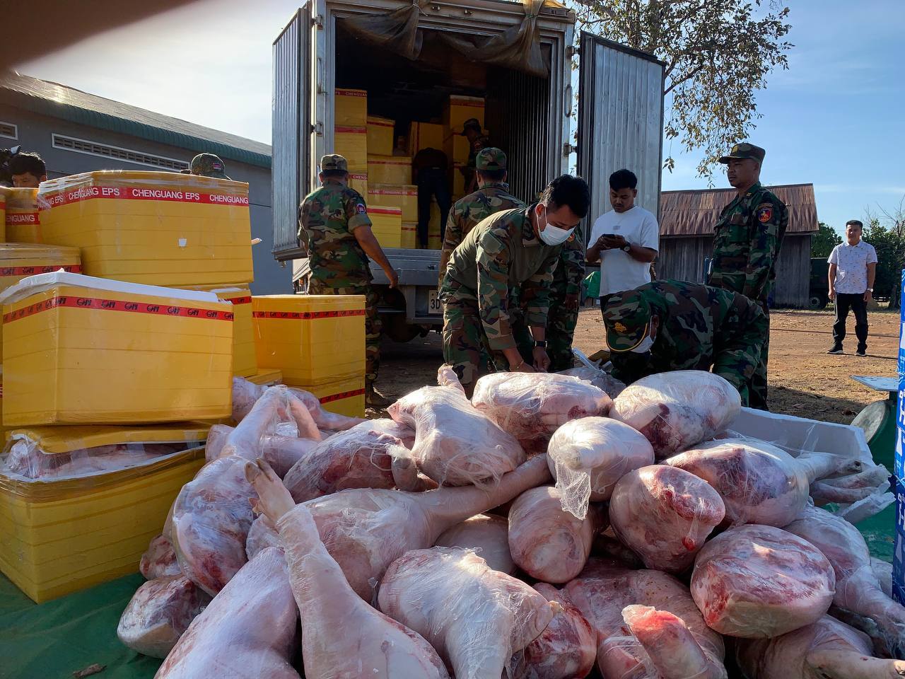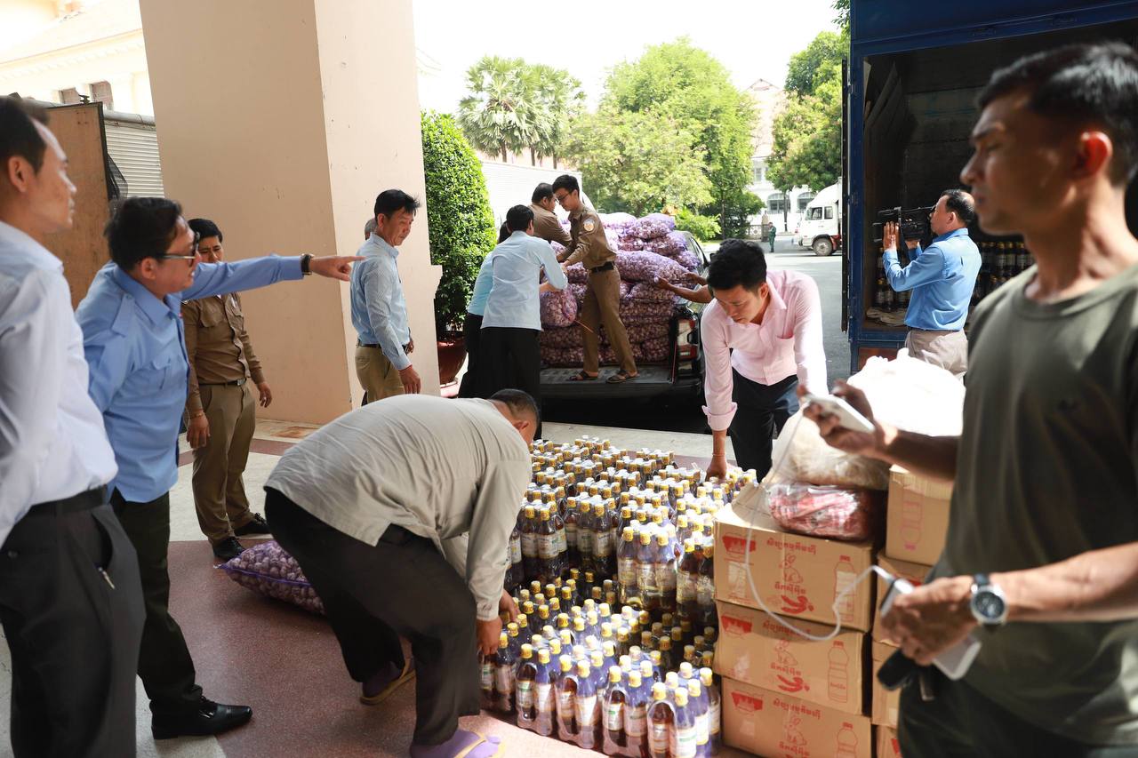 ខេត្តព្រះវិហារ ៖ អំណោយសប្បុរសធម៌ ជាសាច់ជ្រូក សាច់គោស្រស់ចំនួន ៦តោន និងគ្រឿងឧបភោគ បរិភោគ ចំនួន៣១មុខរបស់សម្ដេចមហាបវរធិបតី ហ៊ុន ម៉ាណែត នាយករដ្ឋមន្ដ្រី នៃព្រះរាជាណាចក្រកម្ពុជា និងលោកជំទាវបណ្ឌិត ពេជ ចន្ទមុនី្ន ហ៊ុន ម៉ាណែត ផ្ដល់តាមរយៈរដ្ឋបាលរាជធានីភ្នំពេញ ត្រូវបានរដ្ឋបាលរាជធានីភ្នំពេញ ដឹកយកទៅប្រគល់ជូនដល់ដៃ វីរកងទ័ពជួរមុខចំនួន៣គោលដៅ ដែលកំពុងឈរជើងការពារខ្សែបន្ទាត់ព្រុំដែនកម្ពុជា-ថៃ យ៉ាងរឹងមាំង នៅទិសខេត្ដព្រះវិហារ ក្នុងស្មារតីខ្មែរជួយខ្មែរ និងដើម្បីចូលរួមចំណែកសម្រាលបន្ទុករបស់អាជ្ញាធរ ក្នុងគ្រាមានអាសន្ន ។