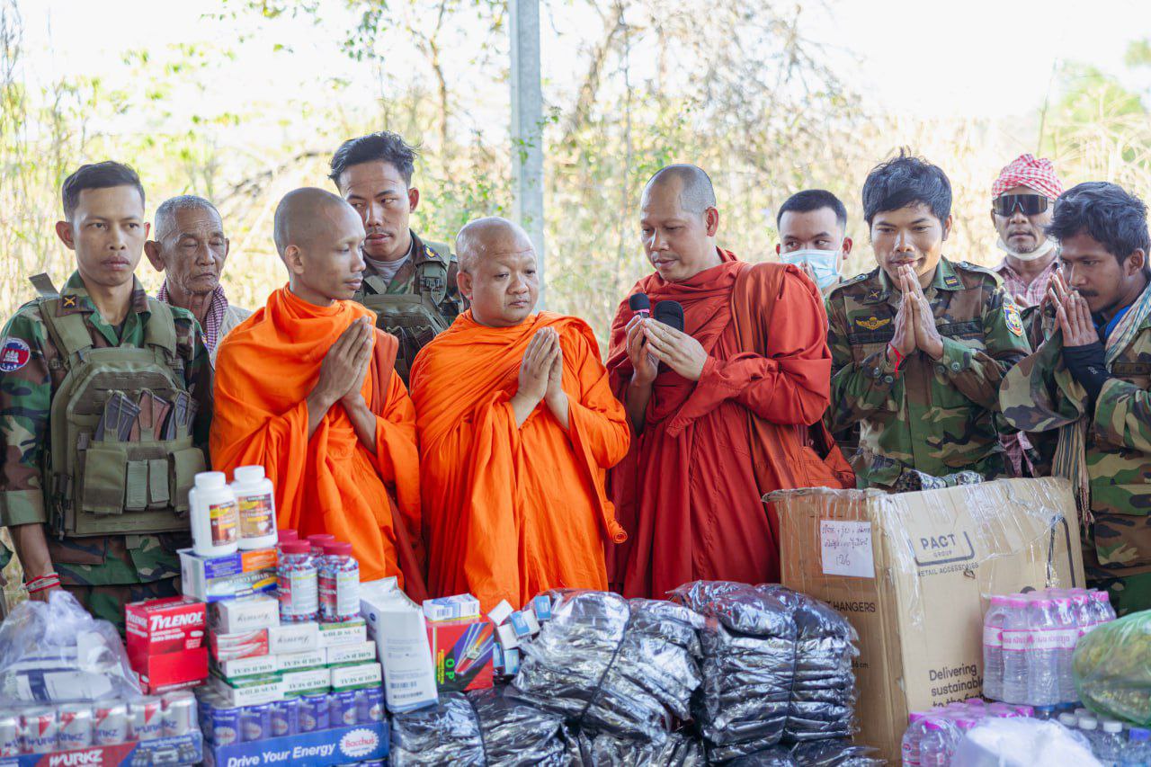 ក្នុងនោះដែរ ព្រះវិចិត្រវង្សា ហែម គឹមសាន ញាតិធម្មោ ព្រះគ្រូចៅអធិការវត្តប្រាសាទគោកចក និងព្រះមហាចារ សំ សារ៉ូន ព្រះគ្រូចៅ អធិការខ្មែរខេមរៈពុទ្ធិការាម(វត្តវេឡូរ៍)រដ្ឋកាលីហ្វ័រញ៉ា សហរដ្ឋអាមេរិក មានព្រះថេរដីកា អរគុណដល់បងប្អូនវីរៈកងទ័ពជួរមុខដែលបានខិតខំប្រឹងប្រែងការពារបូរណភាពទឹកដី និងរក្សាសន្តិសុខជូនជាតិមាតុភូមិ ។ ព្រះអង្គបានមានព្រះទ័យស្រណោះបងប្អូនវីរៈកងទ័ពដែលត្រូវប្រឈមនឹងការលំបាកសព្វបែបយ៉ាង និងឆ្ងាយពីកូន ប្រពន្ធ គ្រួសារសាច់ញាតិ និង ឪពុកម្តាយ ហាលភ្លៀងហាលខ្យល់ ដេីម្បី ទឹកដីខ្មែរ និង ប្រជារាស្ត្រខ្មែរបានសុខសាន្ត ។