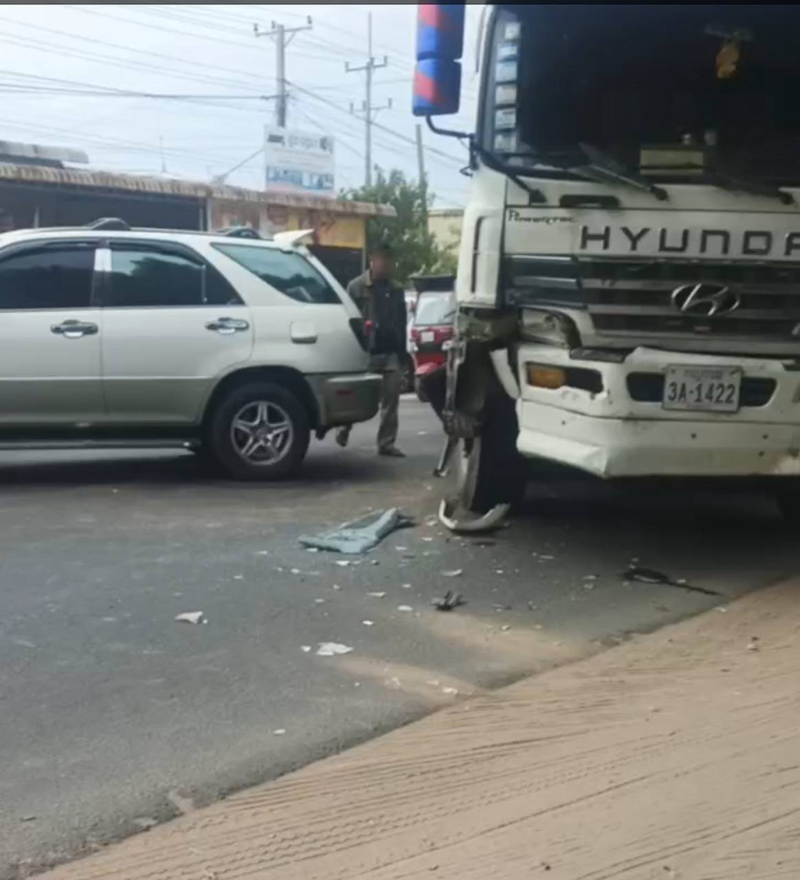 បើតាមមហាជនបានលើកឡើងថា មុនពេលកើតហេតុ គេឃើញរថយន្តដឹកទំនិញម៉ាកហ៊ីយ៉ាន់ដាយបើកបរពីទឹសខាងកើតទៅលិច លុះមកដល់ចំណុចកើតហេតុខាងលើក៏មានរថយន្តម៉ាកឡិចស៊ីស១គ្រឿង បើកស្របទឹសគ្នាឡើងវ៉ារថយន្តដឹកទំនិញហើយ ខណៈនោះក៏មានរថយន្តសាំយ៉ុង១គ្រឿងទៀតបើកបរដោយជនជាតិចិនបើកវ៉ាជែងមួយត្រួតទៀតស្របពេលនោះដែរក៏មានរថយន្តធុនធំបើកមកបញ្ច្រាស់ទឹសគ្នា រថយន្តសាំយ៉ុងទាញចង្កូតចូលបង្កឲ្យបុកបន្តកន្ទុយគ្នា០៣គ្រឿងតែម្តង ក៏ប៉ុន្តែសំណាងល្អមិនបង្កឲ្យមានអ្នករងរបួសទេ។
