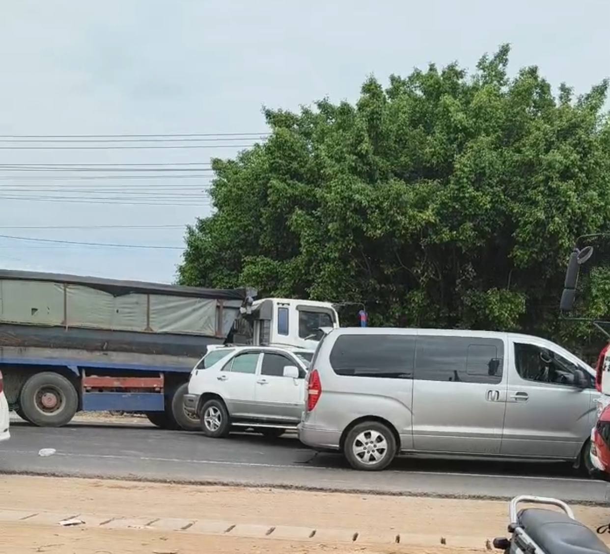 ខេត្តស្វាយរៀង៖មានករណីគ្រោះថ្នាក់ចរាចរណ៍រថយន្តបើកវ៉ាជែងបុកកៀបជាប់គ្នា០៣គ្រឿង តែមិនបណ្តាលឱ្យមនុស្សណាម្នាក់រងគ្រោះថ្នាក់នោះទេ ។