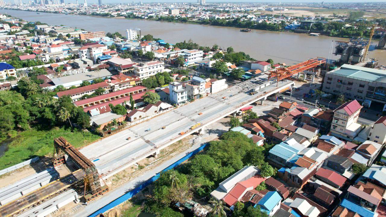វឌ្ឍនភាពគម្រោងគិតត្រឹមដំណាច់ខែធ្នូ ឆ្នាំ២០២៥ សម្រេចបាន៥៤,២០ % លឿនជាងផែនការ ៣,៤៥% ក្នុងនោះ ៖ ១-ផ្នែកគ្រឹះស្ពាន សម្រេច ១០០% ។ ២-រចនា សម្ព័ន្ធ ក្រោមស្ពានសម្រេចបាន៨៩% (ជញ្ជាំងក្បាលស្ពាន ចំនួន៤ សម្រេចបាន២ក្បាលសសរស្ពានចំនួន៤ សម្រេចបាន២តួសសរស្ពាន១២រួចរាល់ សសរស្ពាន៥២រួចរាល់ និងធ្នឹមភ្ជាប់ក្បាលសសរទទឹងស្ពាន ចំនួន៣៤ សម្រេចបាន៣០ធ្នឹម )។ ៣-រចនាសម្ព័ន្ធលើស្ពានសម្រេចបាន២៩% ( ធ្នឹមT តម្លើង ១៨០ ដើម សម្រេចបាន ៨៣ និងធ្នឹម T ចាក់នៅកន្លែង ១៨០ ដើម សម្រេចបាន ៦៦ )។ ៤-បណ្តាញ ផ្លូវសម្រេចបាន៣១,៣០ % (តភ្ជាប់ ប្រវែង ៨០៤,៣០ម. សម្រេចបាន ២៩% និងផ្លូវបង្វែរទិស( Ram) ប្រវែង ១,៥៤ម. សម្រេចបាន ៣៦%) ។