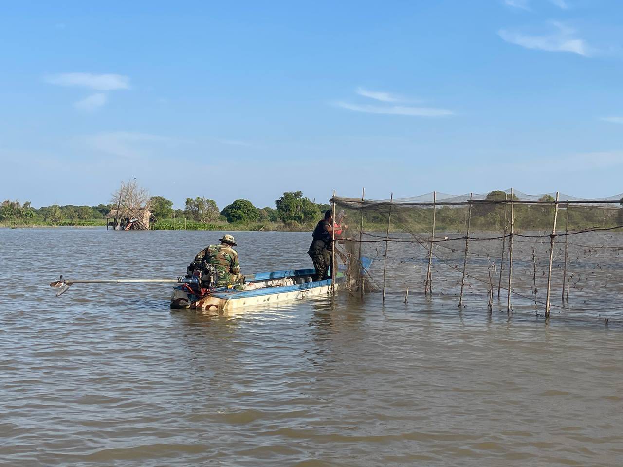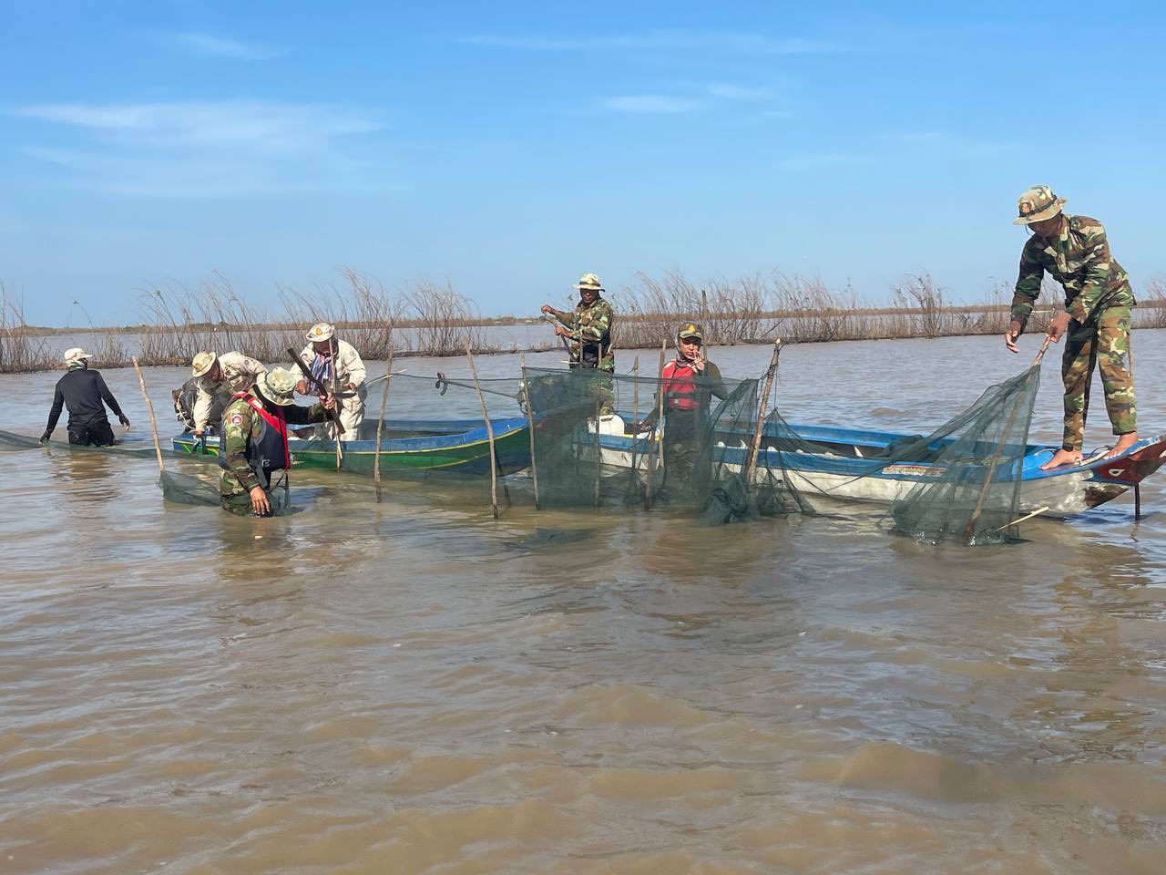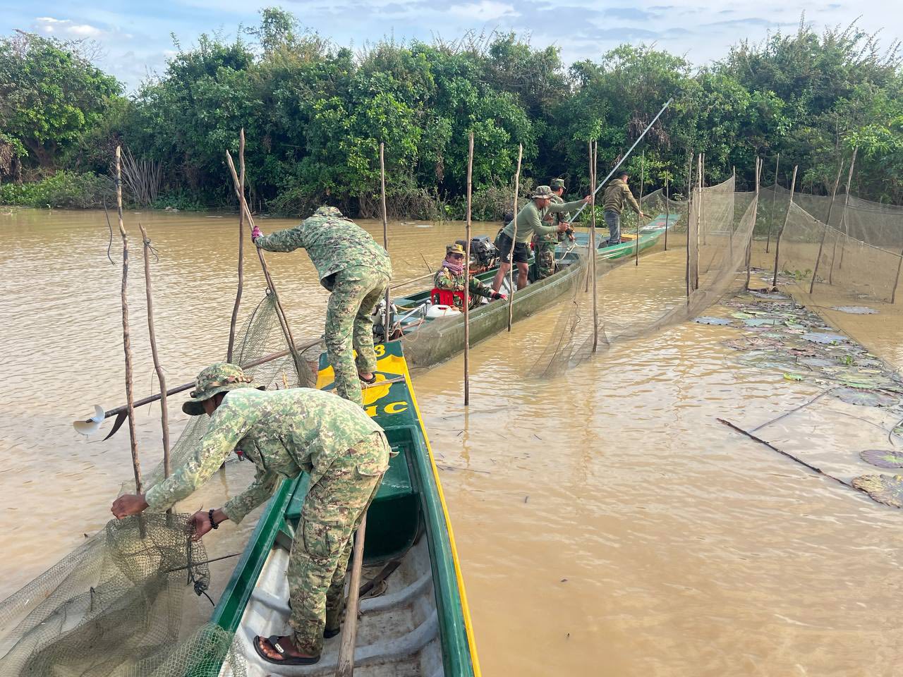 នៅព្រឹកថ្ងៃទី០៧ ខែមករា ឆ្នាំ២០២៦នេះ លោកវរសេនីយ៍ត្រី ភោគ ប៊ុនធឿន បានដឹកនាំកងកម្លាំង សហការជាមួយសមត្ថកិច្ចជំនាញសកម្មភាព បង្ក្រាបបទល្មើសនេសាទខុសច្បាប់ នៅតំបន់ក្អែកដេក និងតំបន់តាកន នៅក្នុងភូមិសាស្ត្រឃុំម្សារក្រង ស្រុកស្ទោង ជាលទ្ធផលបានរុះរើ និងកាប់បំផ្លាញចោលឧបករណ៍នេសាទខុសច្បាប់មានរបាំងសាច់អួនក្រឡាញឹក ចំនួន៦របាំង ប្រវែងជាង ១,៨០០ម៉ែត្រ និងបានបំផ្លាញចោលឡុកសាច់អួនចំនួន ៥គ្រឿង លបឬលូចំនួន ១២មាត់ និងចាក់ប្រលែងត្រីចម្រុះជាង ៣០គីឡូក្រាម ។